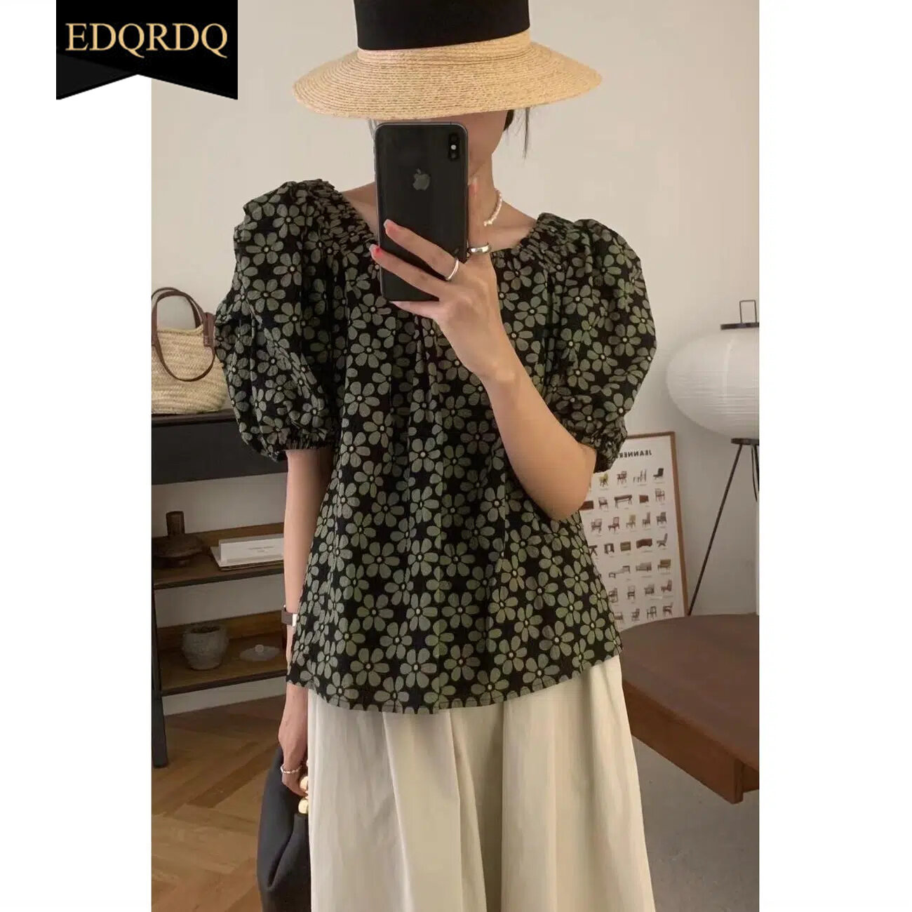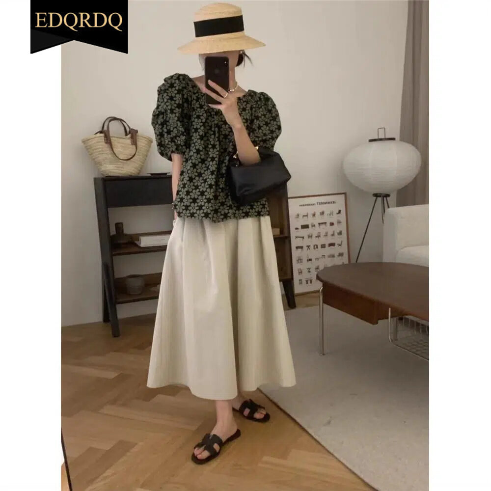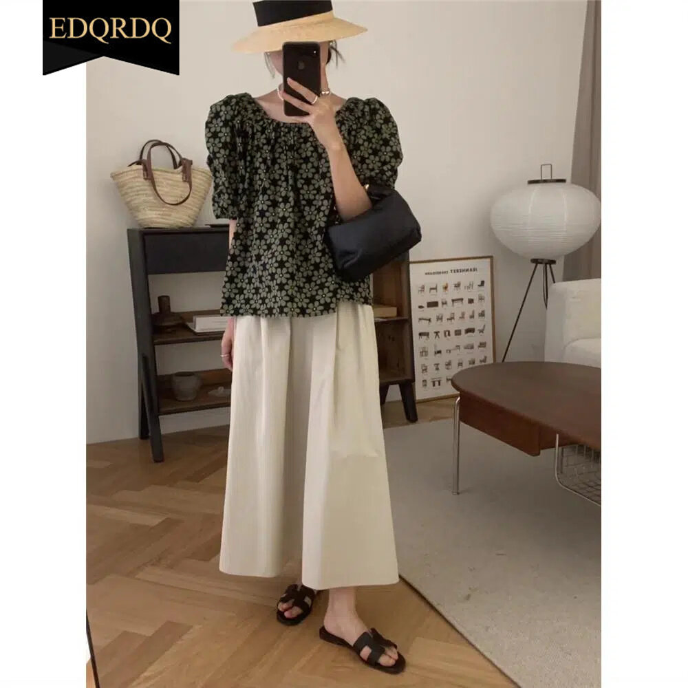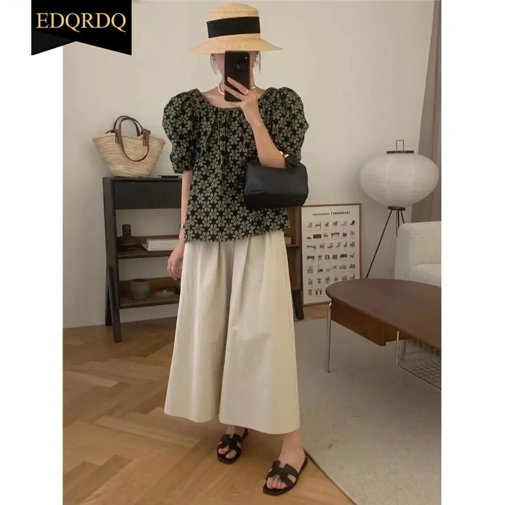 EDQRDQ Womens Oversized Floral Blouse Off Shoulder Puff Sleeves Chiffon Flowy Tops