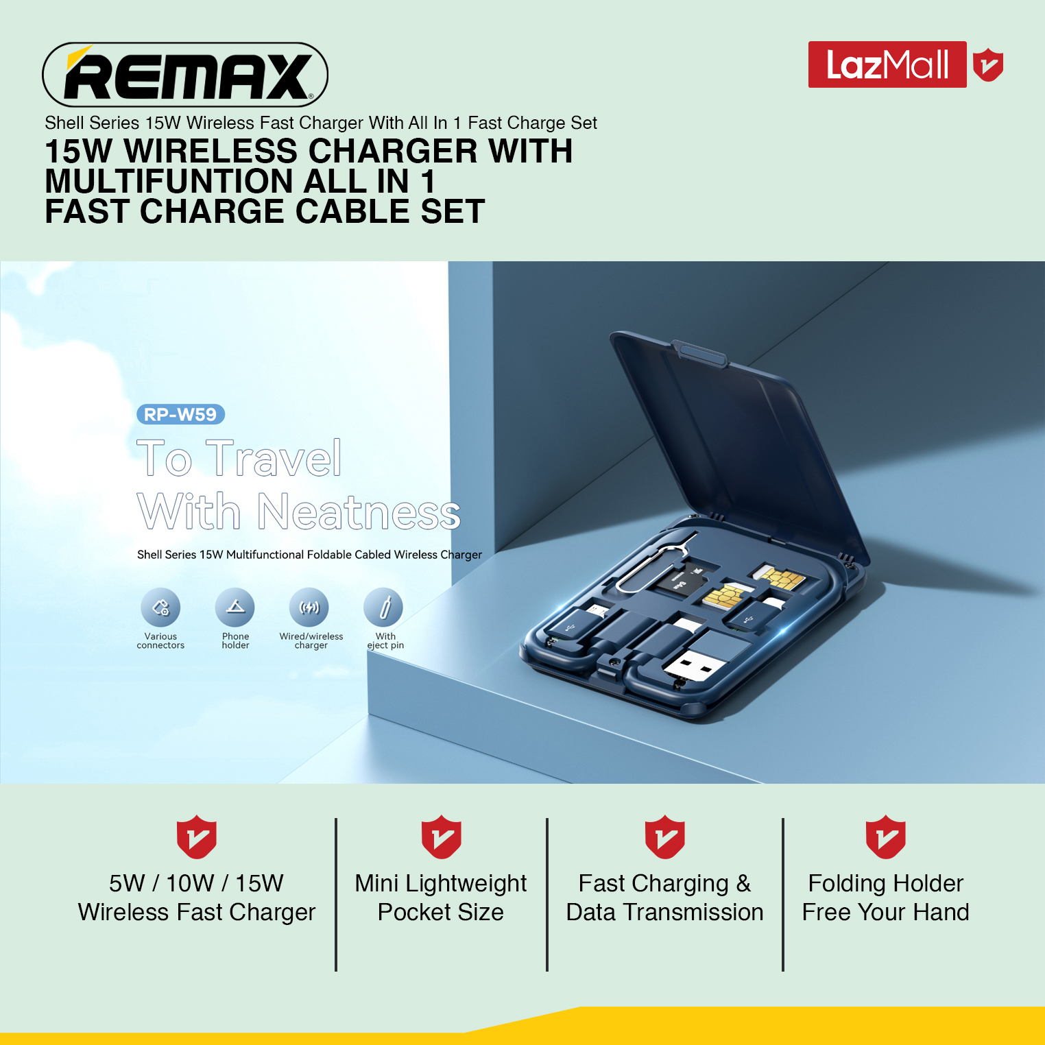 [Remax Energy] RP-W59 60W Fast Charging Cables + 15W Wireless Charger Type-C Mobile Phone Data Cable USB Charger Set Storage Box