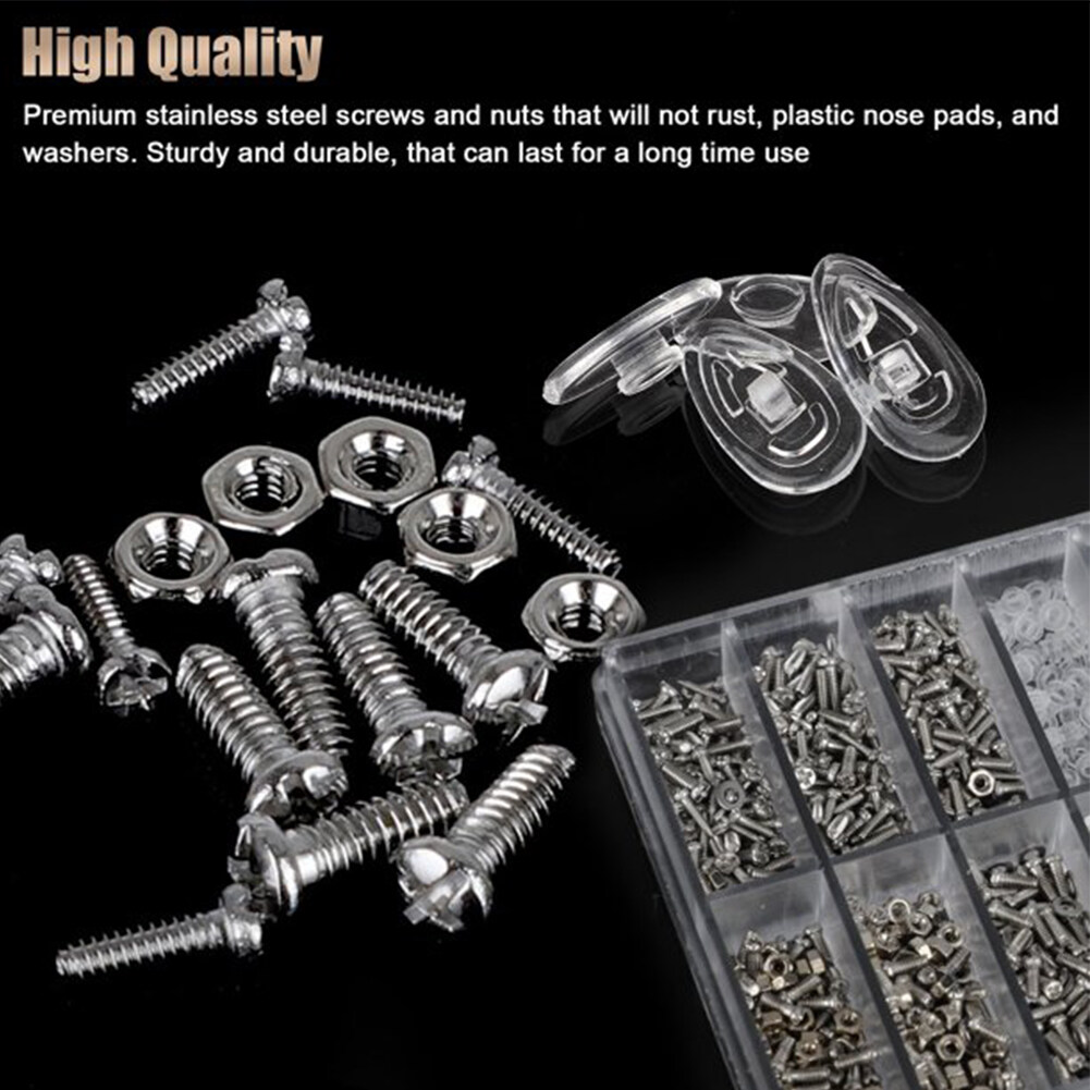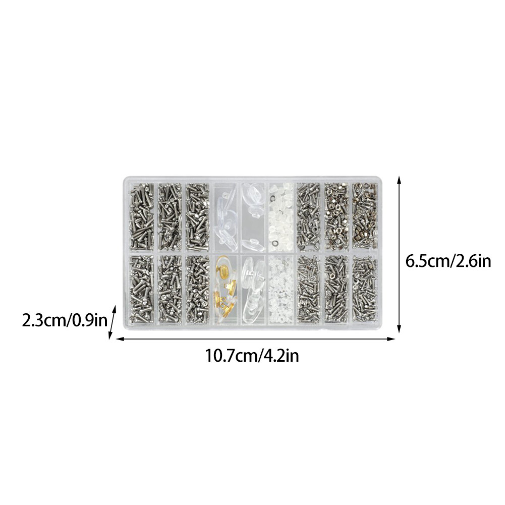 【Well classified】Packed in transparent plastic box with divider to classify the various items, easy to see the location of all the things.Glasses repair kit contains multiple type:3pcs screwdriver,1pc tweezers,1pc storage box,1000pcs screw.