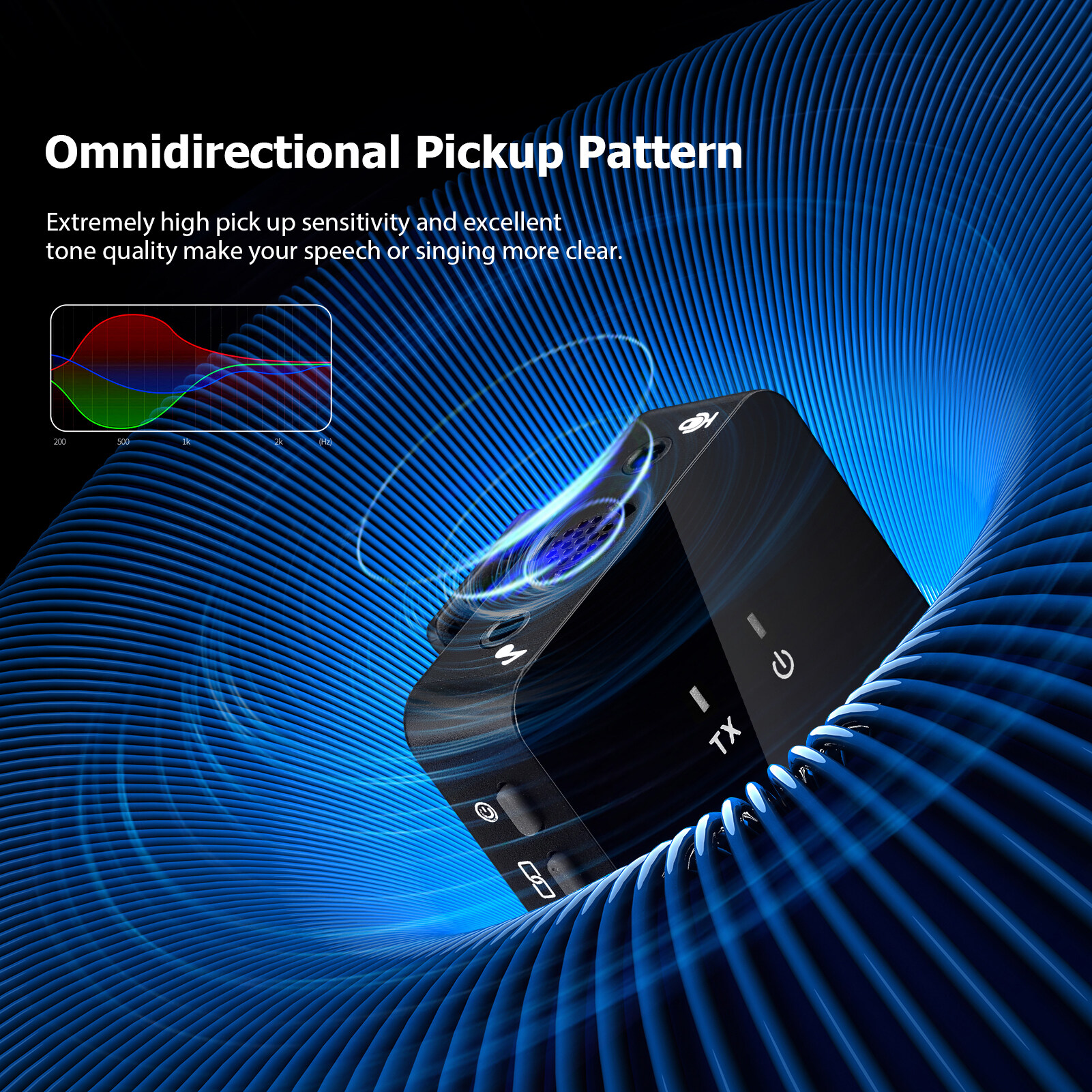 Omnidirectional pickup pattern, extremely high pick up sensitivity and excellent tone quality make your speech or singing more clear.