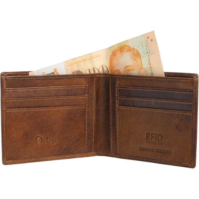 Brown RFID Leather wallet for men -Minimalist Wallet - Full Grain Leather RFID Wallet -Slim Wallet Brown Wallet -ER09 Oxhide- Excellent Christmas Gift Idea