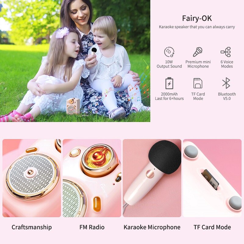We improve Fairy-ok to a new level to provide higher performance and portability, making loud sound effortless.Whether it is parties, group activities or outdoor parties, the Bluetooth speaker can almost be carried with you.