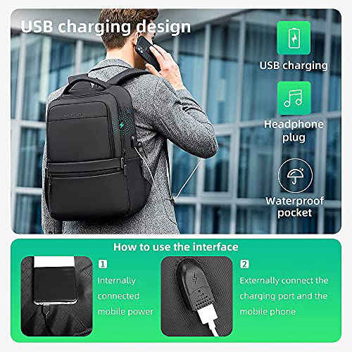 MARK RYDEN Travel Laptop Backpack with USB Charging Port and Headphone Plug, Water Resistant Anti Theft Business Backpack, College School Computer Backpack for Men Women Fits 15.6 Inch Notebook