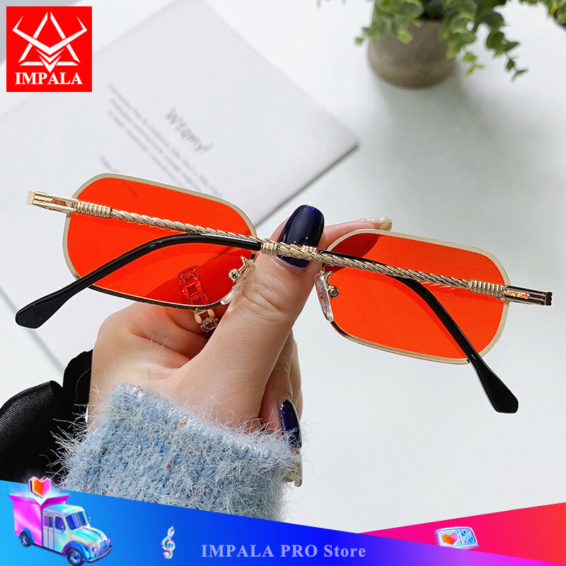 IMPALA QT1658W Fashion Rimless Sunglasses for Women Beautiful Metal Braided Temples Korean Style Colorful Small Lens UV Protection Sun Glasses