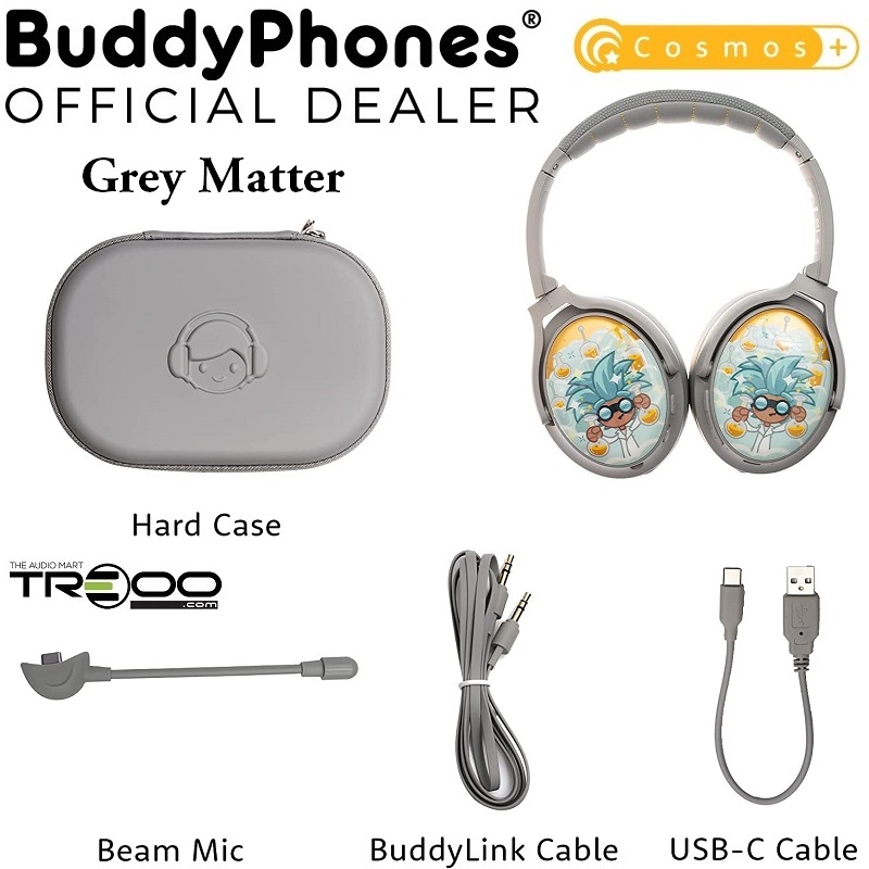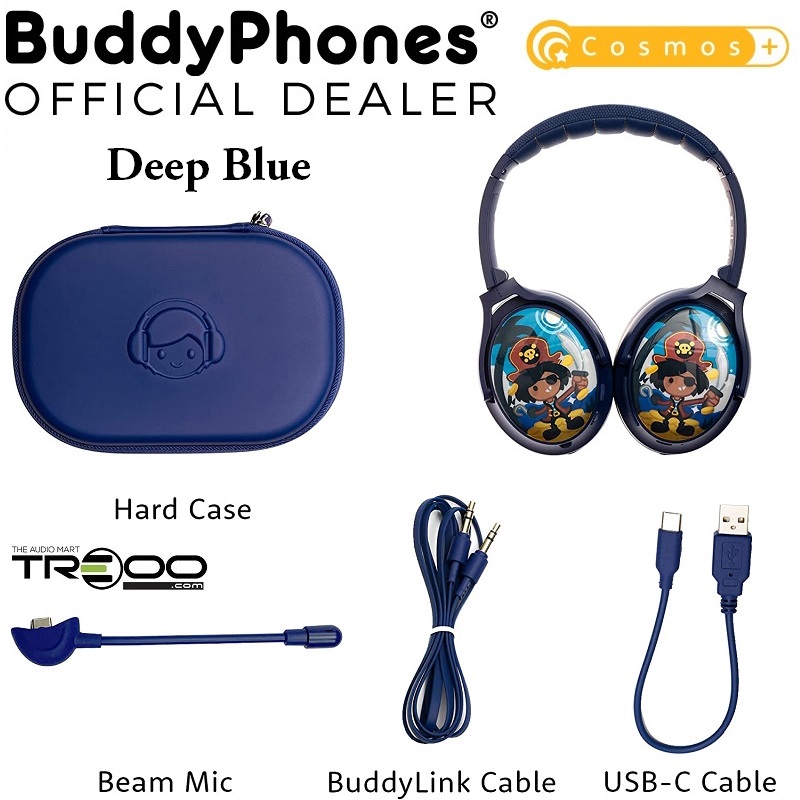 BuddyPhones Cosmos+ Wireless Bluetooth Noise-Cancelling Over-Ear Headphone with Mic for Kids