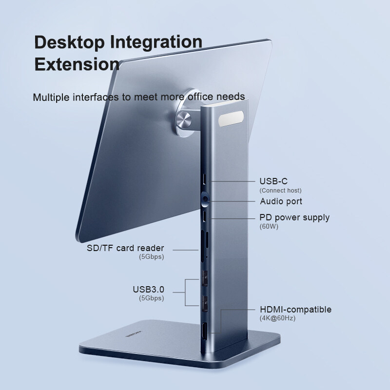 • 2-in-1 Stand & Hub: Hagibis innovative technology combines iPad stand and docking station make it more convenient. You can not only have a magnetic stand but also have a USB-C docking station with 4K@60Hz HDMI, 60W PD, USB 3.0, AUX and SD/Micro SD Card Reader.