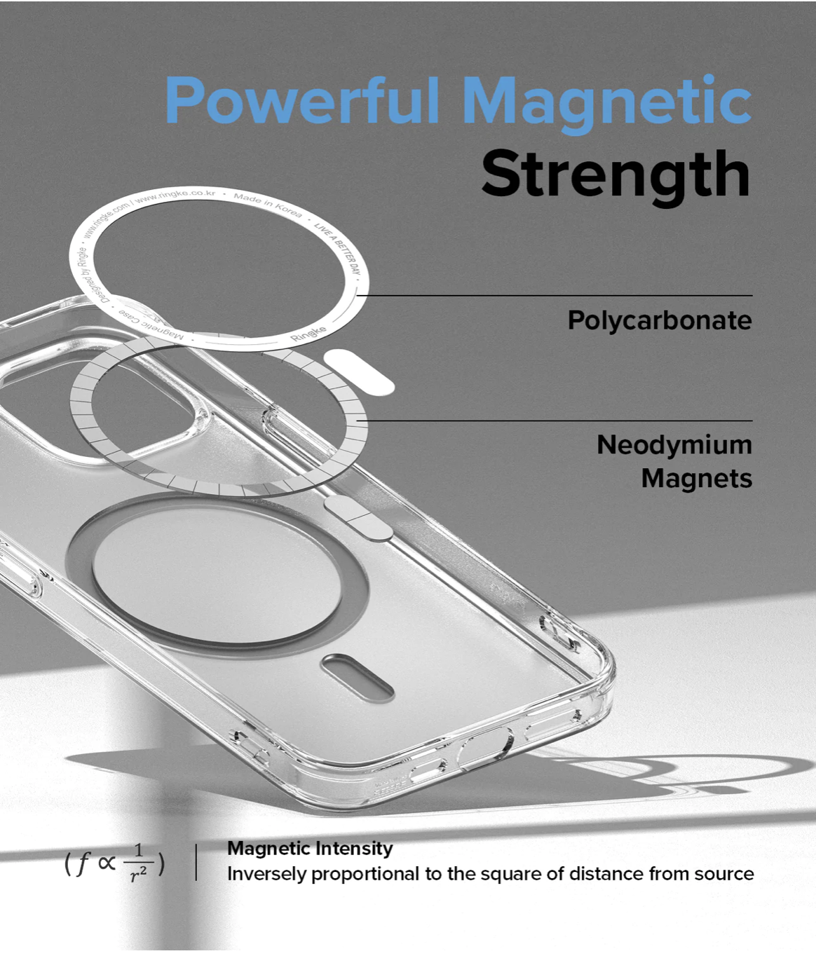 Ringke Fusion Magnetic is a minimalist clear case with a built-in 11-piece magnetic ring to securely attach MagSafe accessories and charger.