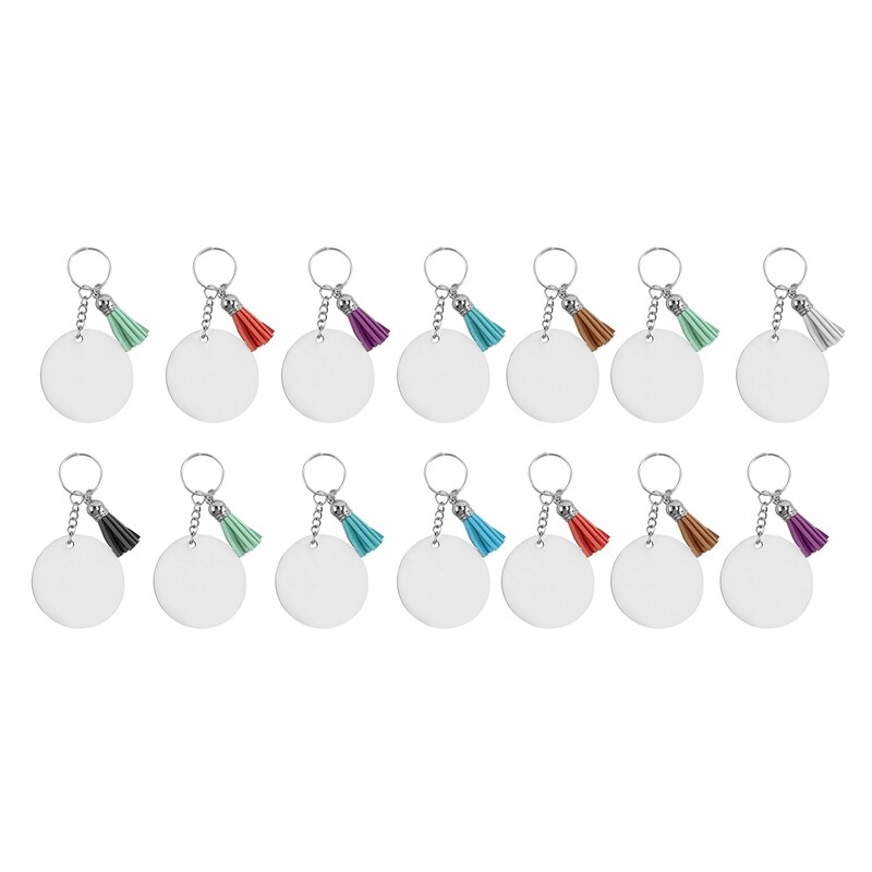 [Easy to Use] - The sublimation blank keychains have protective layer on both sides to prevent scratches, please tear off the layer before DIY, print the image at a temperature of 180 degrees Celsius (356 Fahrenheit) for 40 seconds, you can print on 2 sides, hang on the keychain with tassels, then you will get a beautiful DIY carfts.
