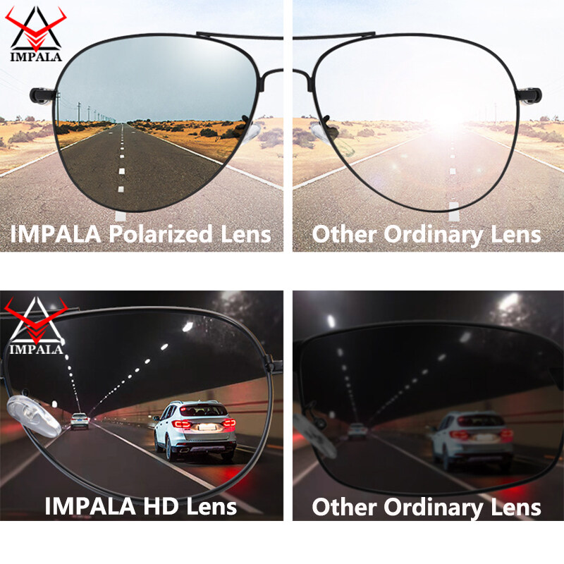 IMPALA PG1836L Retro Polarized Sunglasses for Men Driving Fishing Anti Glare Sun Glasses Metal Frame Aviator Style Outdoor Sports Men' Sunglasses