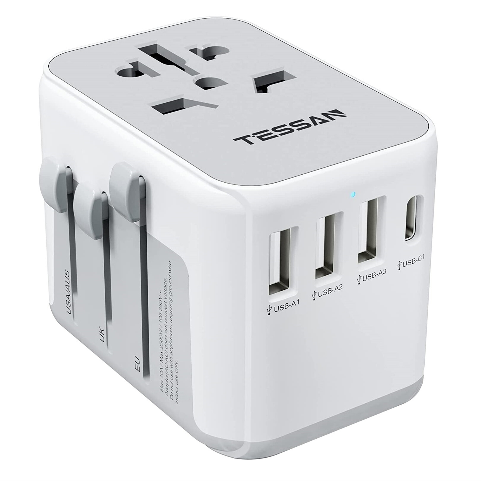 USB C Universal Plug Adapter: The 3 USB A ports can charge up to 2.4A, and the USB C port can charge up to 3A, ideal for cell phone, tablet, power bank, laptop, camera, ect. All the USB ports output: 5V/3.4A, 17W max