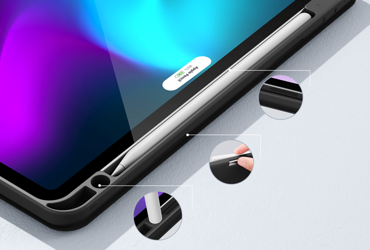 Wirelessly charge your Ap Pencil while keeping it safely secured in the protective Pencil slot to ensure that it stays scratch free and is always on hand when it’s time to create.