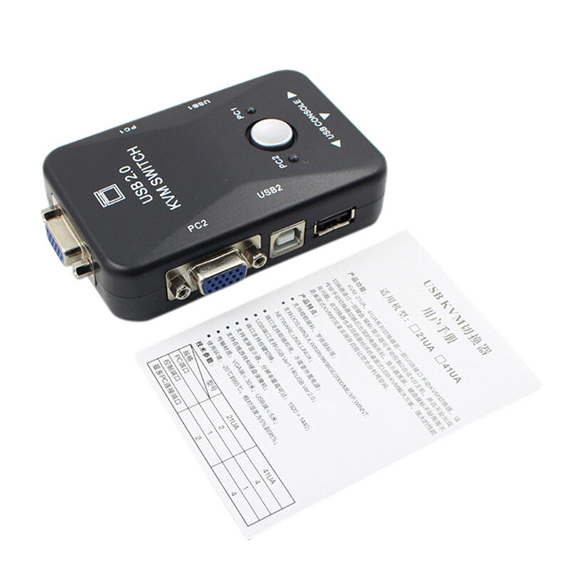 Connects USB keyboard, USB mouse and video to 2 PCs