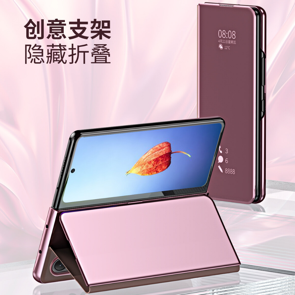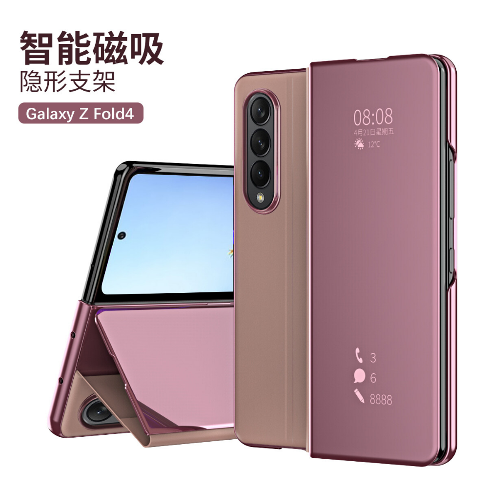 HOCE Luxury Mirror Plating Phone Case For Samsung Galaxy Z Fold 3 4 5G PU Leather Kickstand Shockproof Back Cover Zfold3 ZFold4