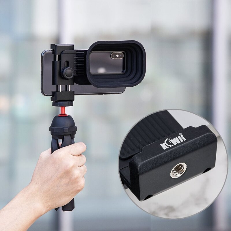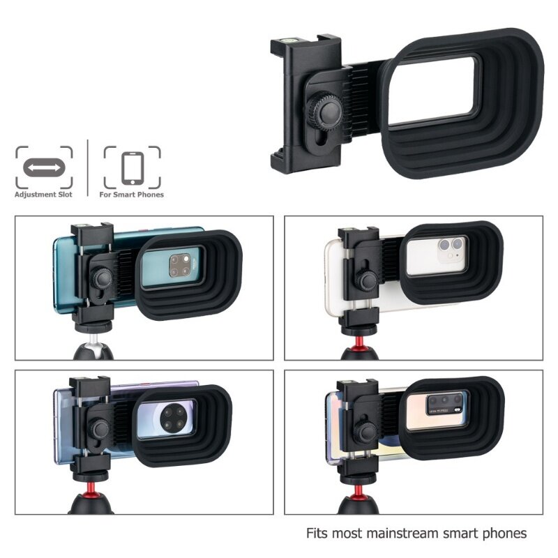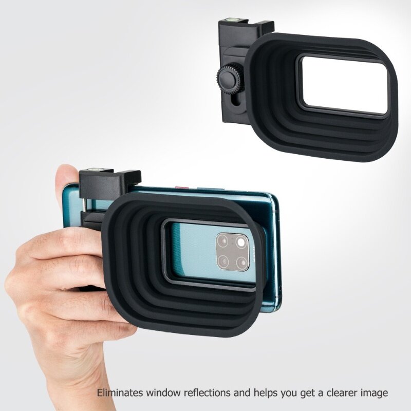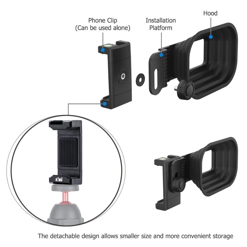 2. Release the knob on the back of the phone clip, then adjust the hood's position by removing the hood adapter so that the phone camera is circled in the hood.