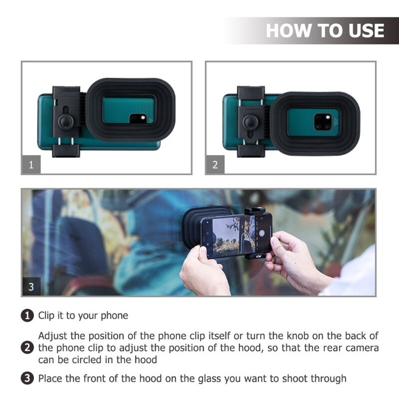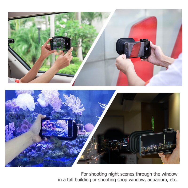A Wonderful tool for shooting through glass window, skyscraper observation deck, bus window, plane or zoo enclsure, aquarium and other places.