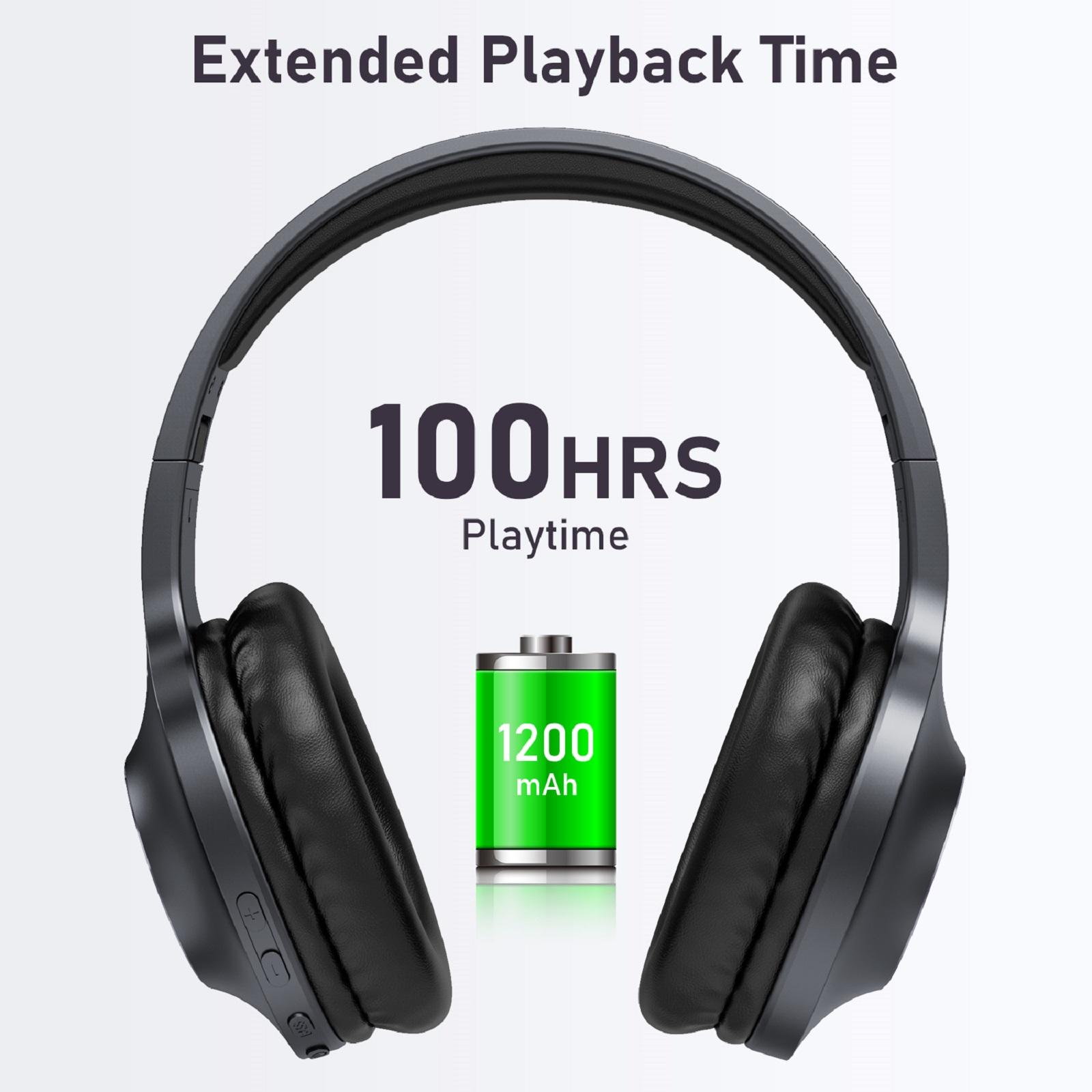 • Up to 100 Hours of Playtime: Using our headphones for 2.5 hours a day can give you a massive 40 days total usage. No more worries about power even when traveling for a full month.