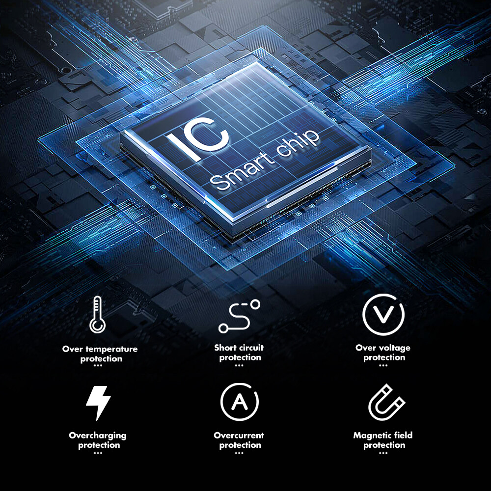7, multiple protection (over temperature, short circuit, overvoltage, overrush, magnetic field protection, etc.)