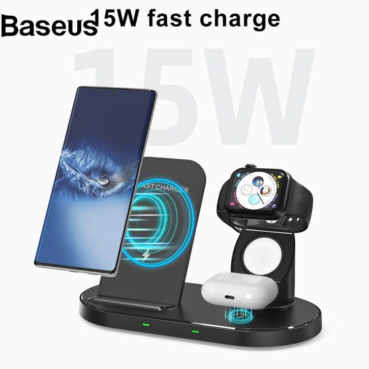 Baseus W55 3 in 1 15W Fast Charging Magnetic Wireless Charger Desktop Station Dock for Mobile Phone / Smart Watch / Headphones (Upgraded Version)
