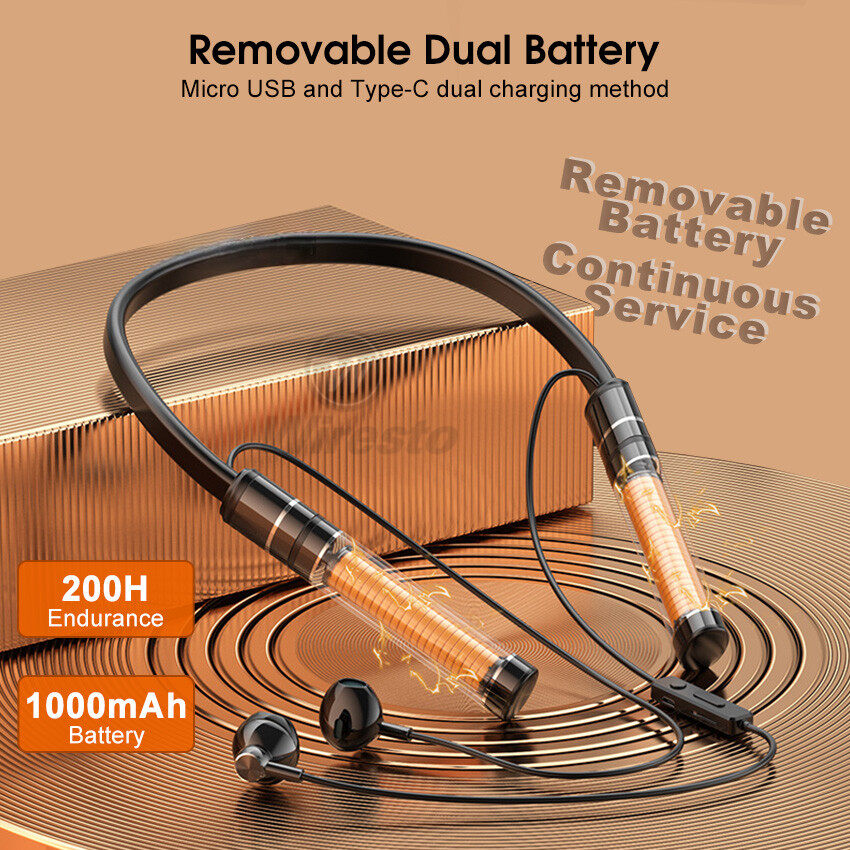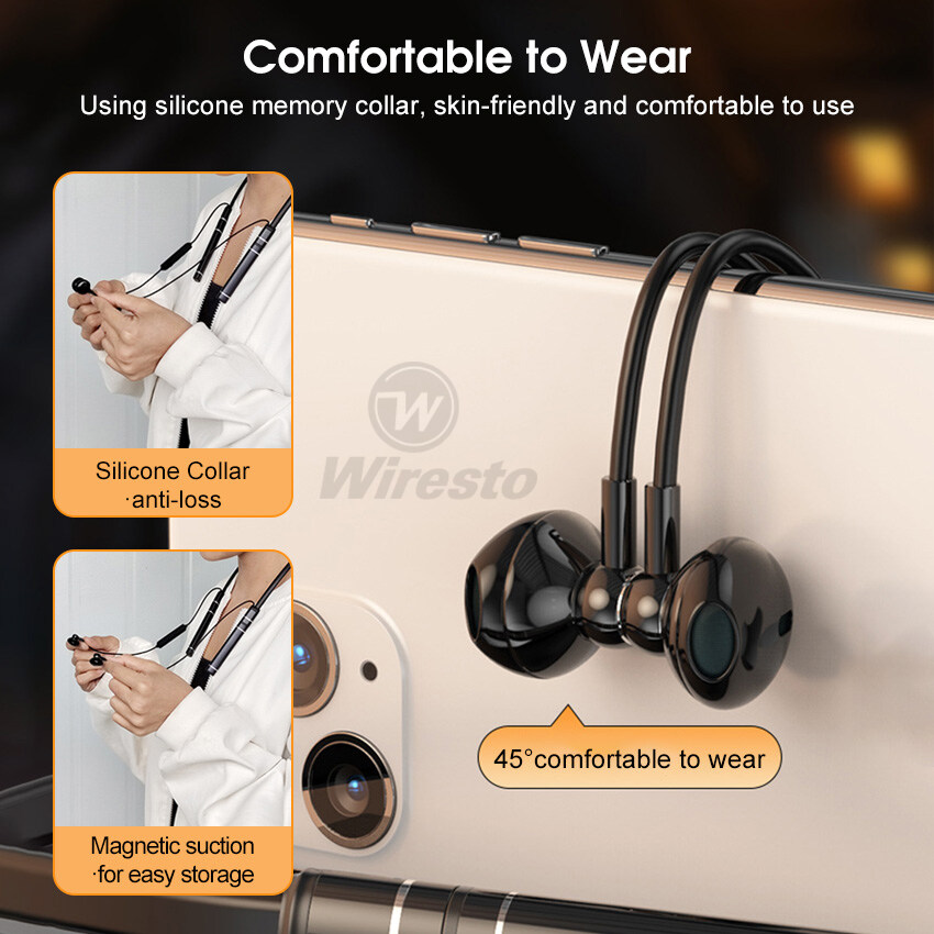 Wiresto TWS Earphone Half In-Ear Headphones Bluetooth 5.3 Earphones Neck Hanging Earbuds Waterproof Sport Earphone HIFI Stereo Headset Support TF Card