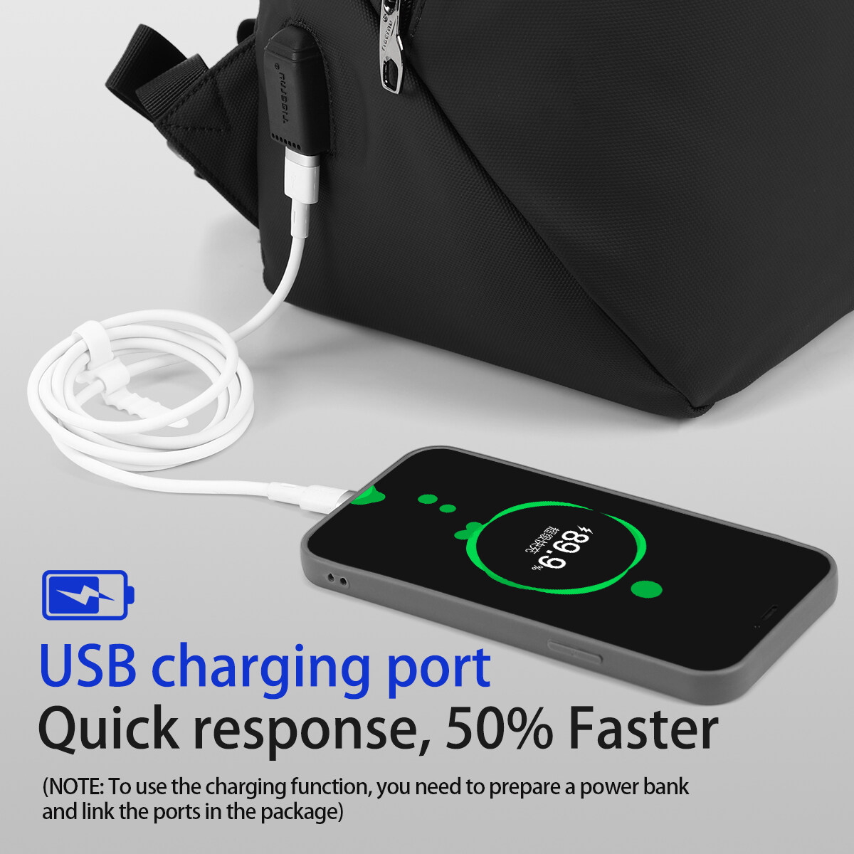 5. Other convenient details design, such as back ventilation system, USB charging port, coded lock, reinforced shoulder strap, retractable hook, and so on.