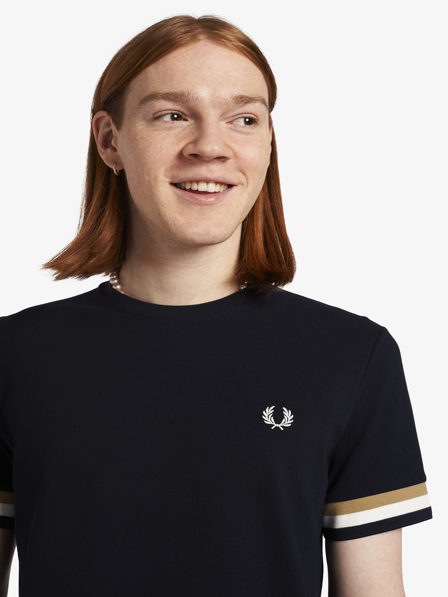 A crew-neck t-shirt featuring our signature Laurel Wreath embroidery and bold tipped cuffs.