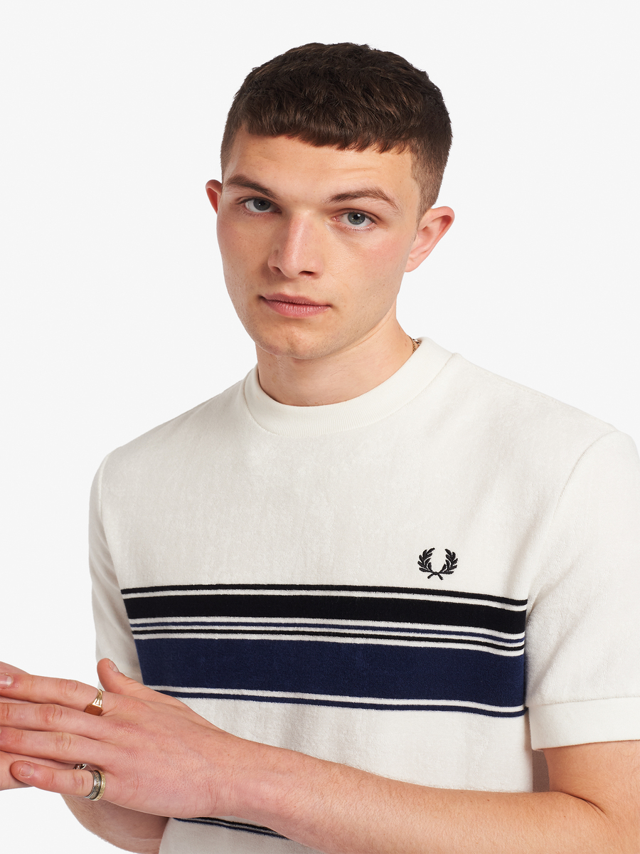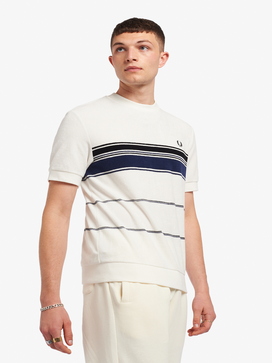 Fred Perry M8802 Striped Toweling T-Shirt (Snow White)