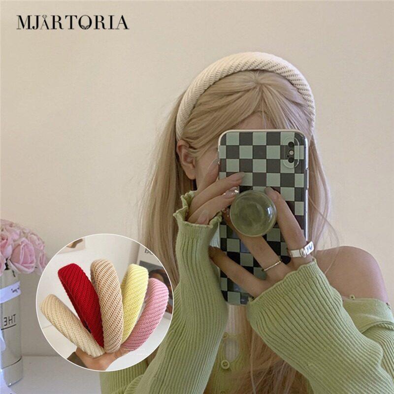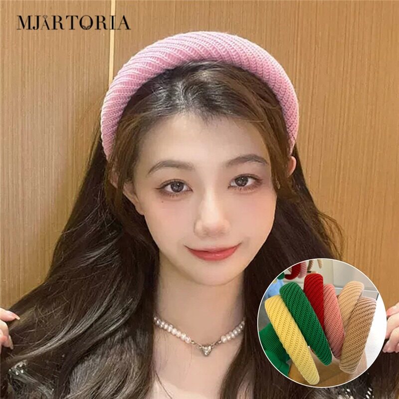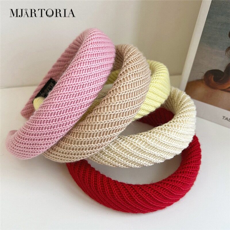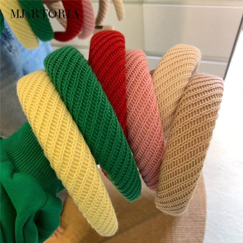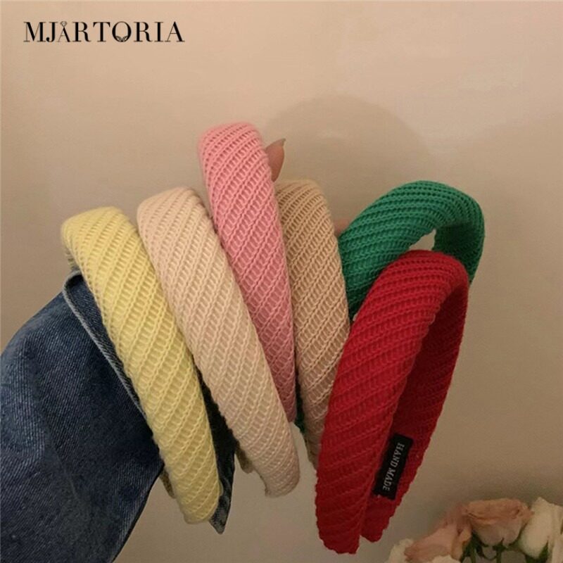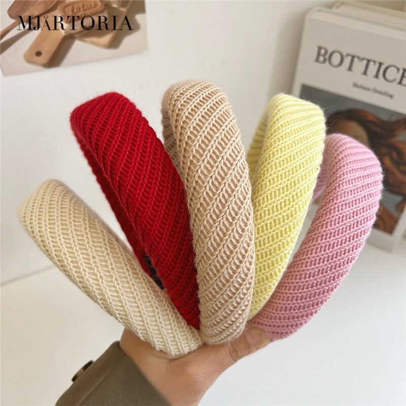 MJartoria Women Knitting Headband Autumn And Winter Girls Retro Hair Bands Soft Hairband Headwear Solid Color Headband