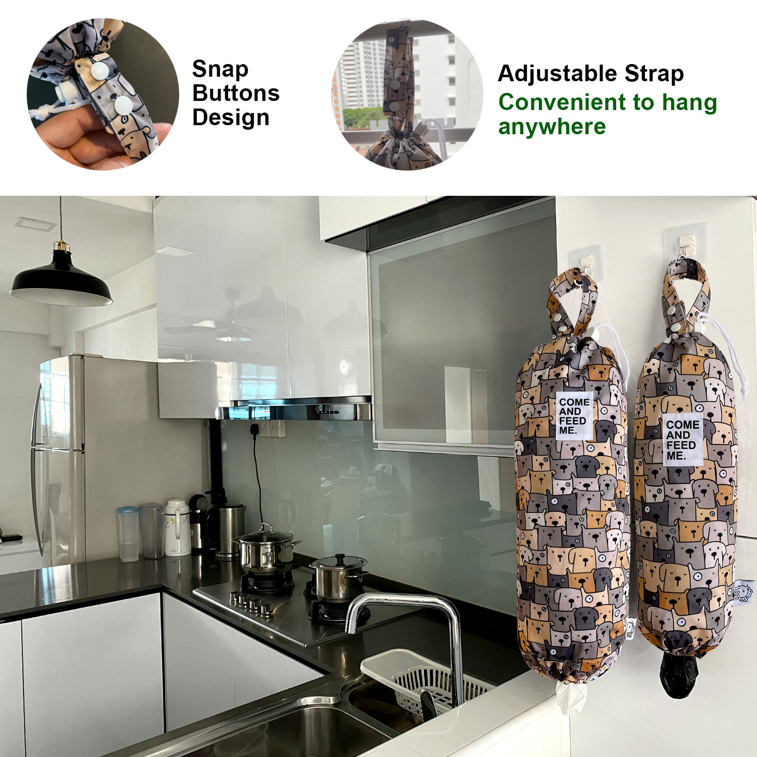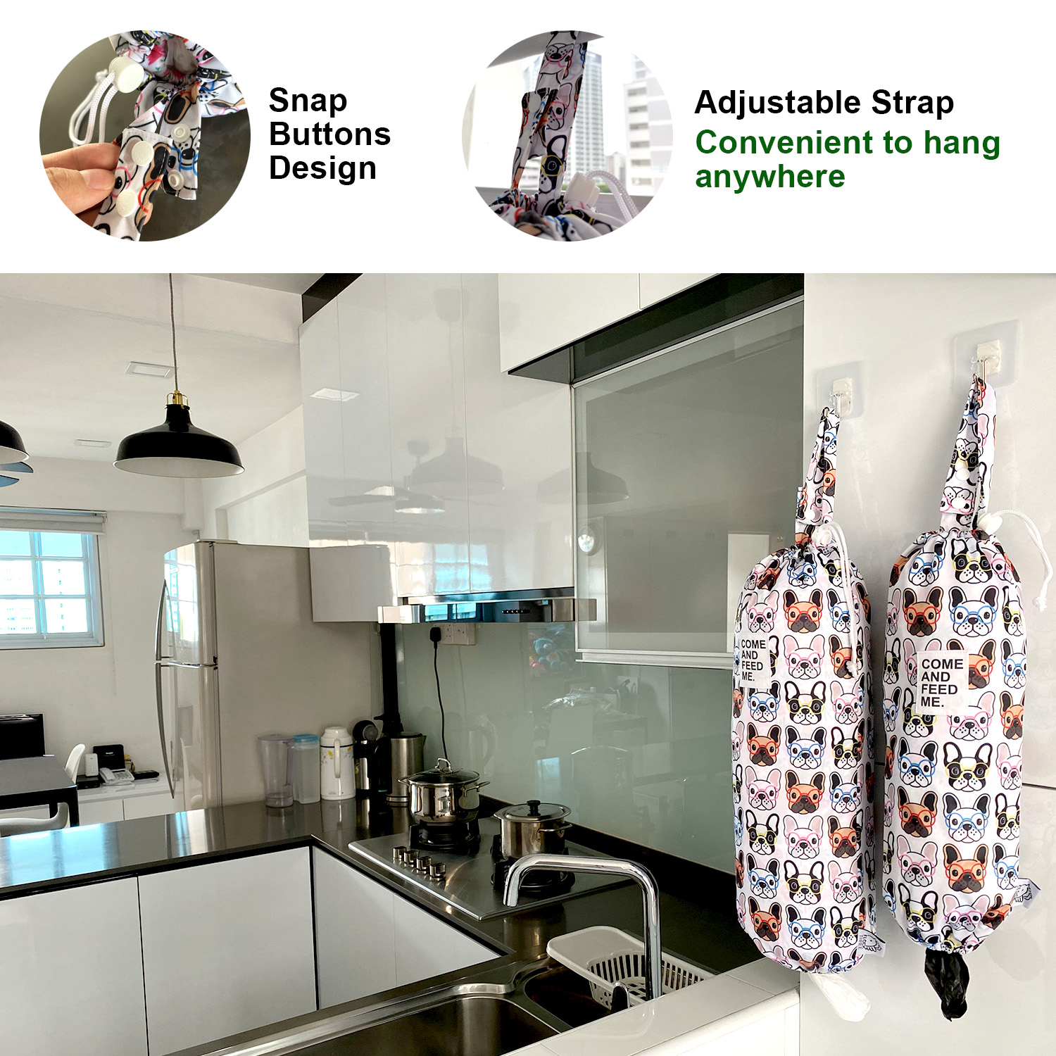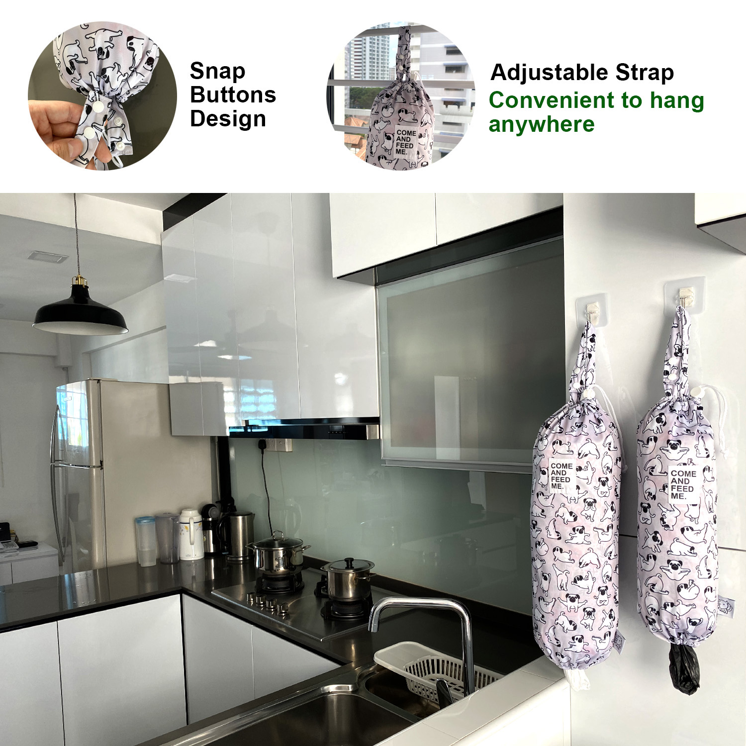 SNAP BUTTON STRAP: Each plastic bag holder has a handle strap on top of the holder for you to hang them anywhere you like! There are two snap buttons on the strap. The strap is adjustable and allows you to hang it up or take it down hassle-free. The sturdy handle can be easily hung on anywhere like a doorknob, towel rack, hook, stroller handlebar or any other places that you deem fit.