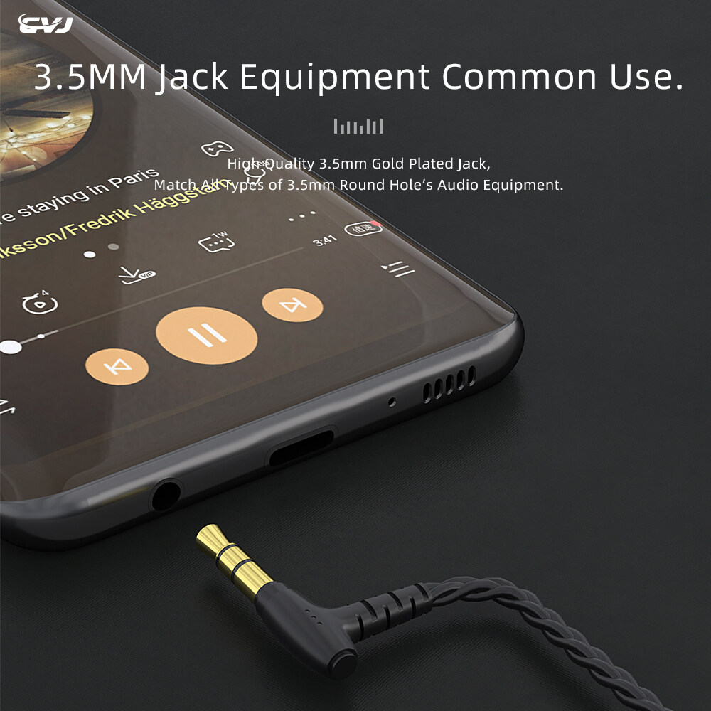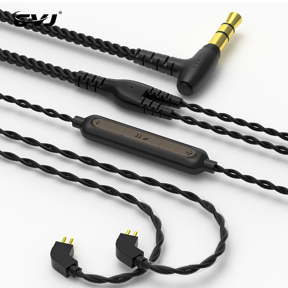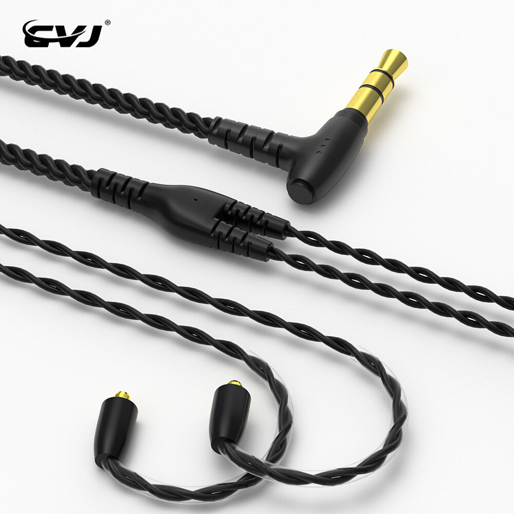 CVJ V2 Replacement Earphone Cable High Pure Oxygen Free Copper Earbuds Line 3.5mm Detachable IEM Headphone Wire 2Pin 0.75mm/0.78mm/MMCX Connector Headset Cable For BLON BL03 Moondrop Aria KZ ZSN Pro C