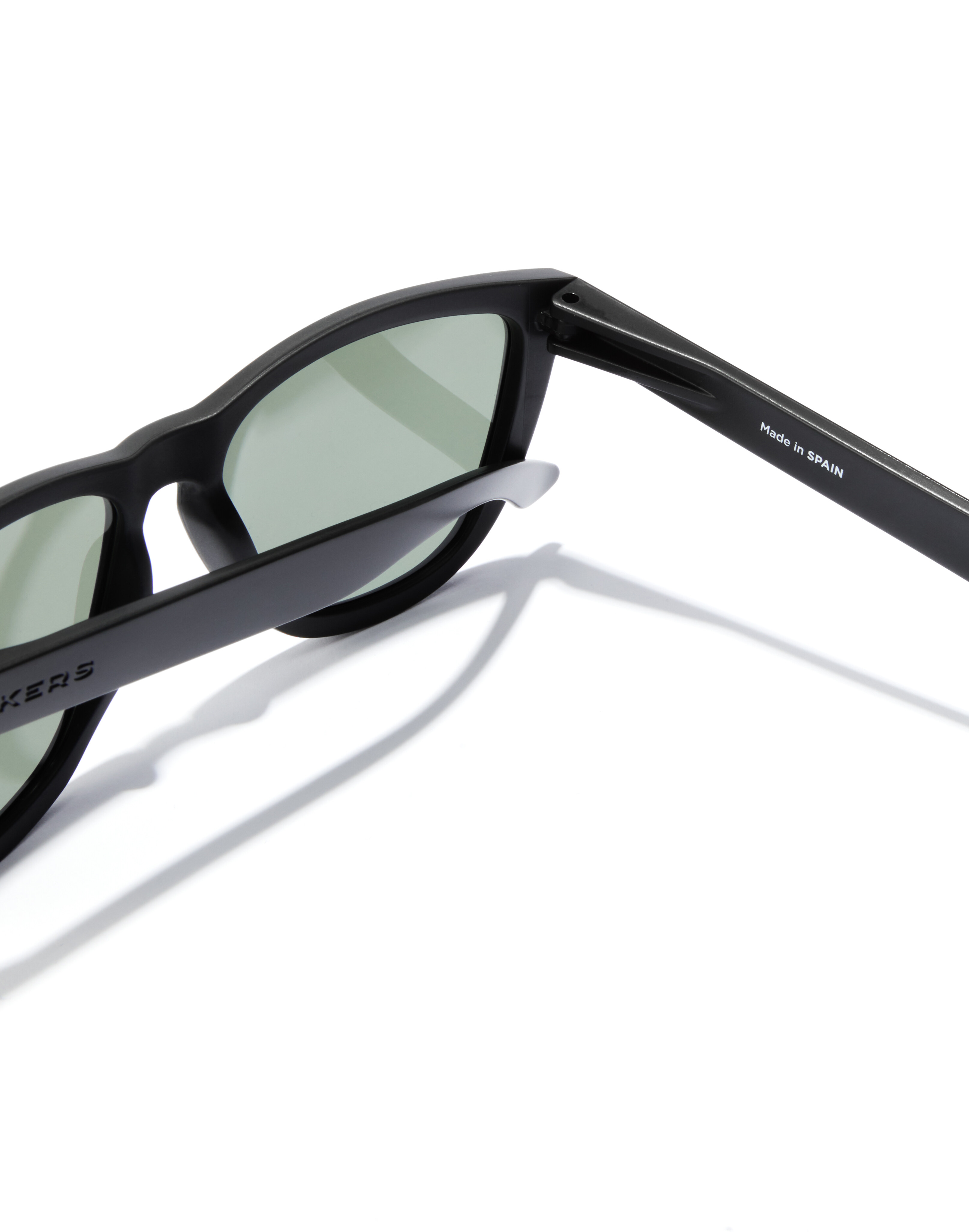 The ONE is our all-time classic design. This model, from the Made in Spain collection, has a matte black frame, and the POLARIZED lenses are alligator green.