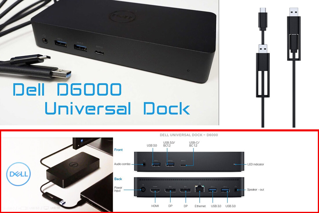 Dell Universal Dock - D6000 - Docking station (USB-C / USB 3.0), connect up to three 4K displays and charge a USB-C laptop up to 65W simultaneously