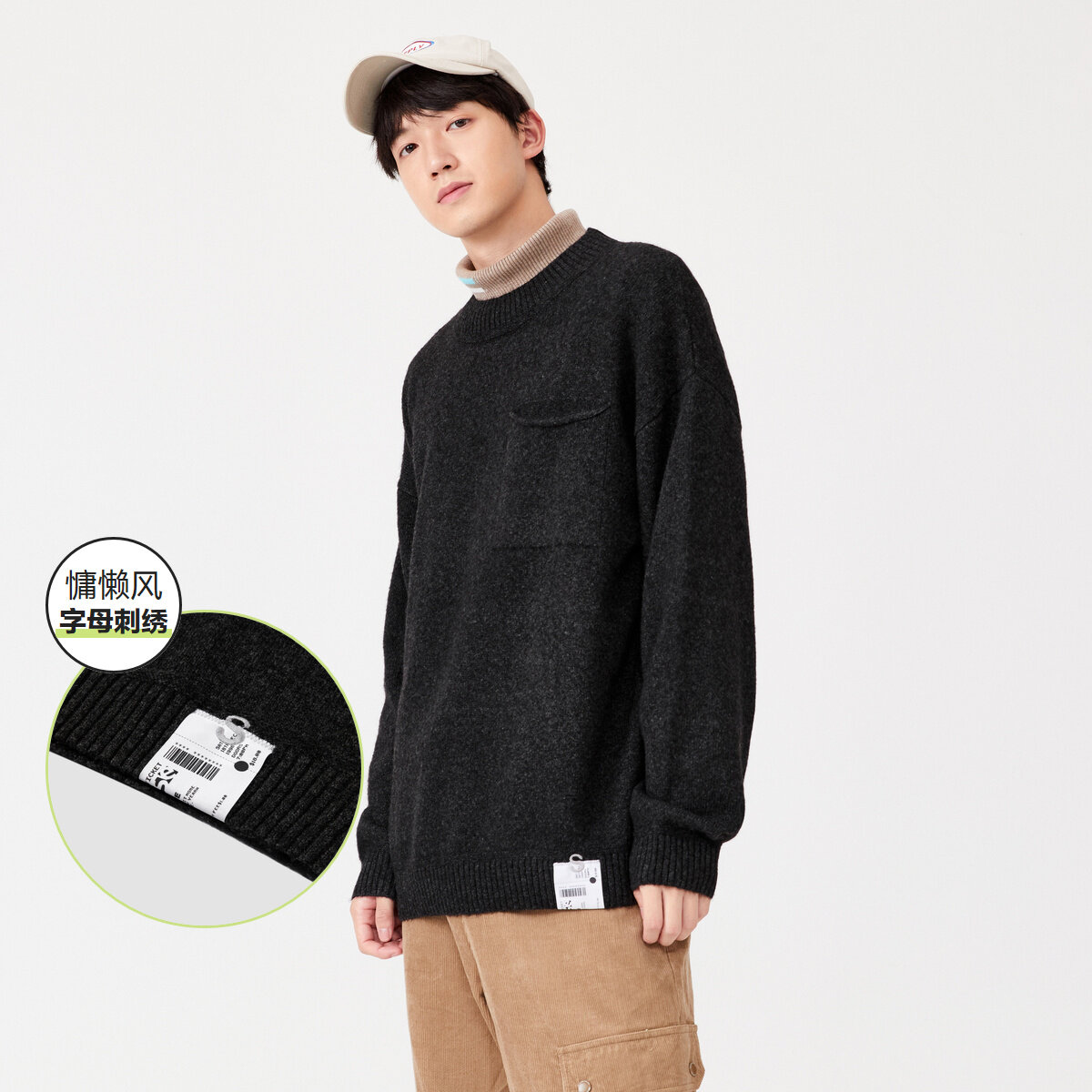Semir Knitwear Men Winter 2022 New Sweater Personality Letter Embroidery Basic Korean Loose Men'S Top