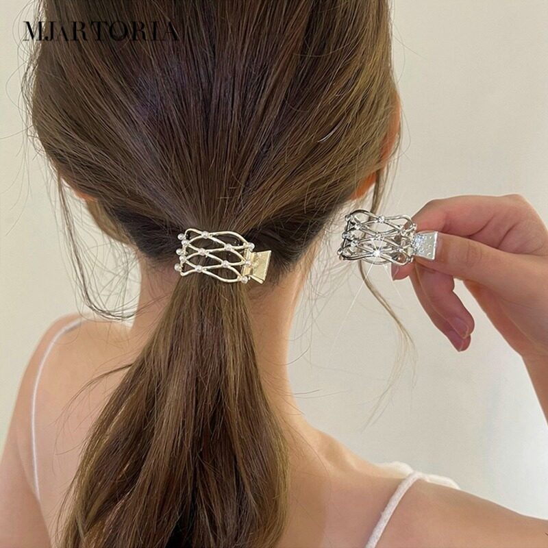 MJartoria New Pearl Rhinestone Hair Claws Girl High Ponytail Clip Fixed Hairpin Claw Clip Advanced Sense Headwear Hair Accessories