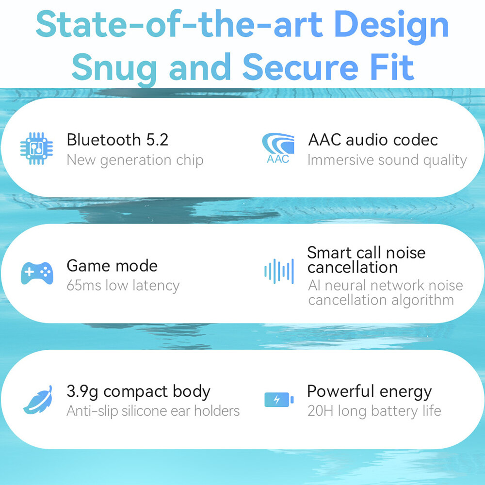 - Bluetooth 5.2 - faster pairing with low-power consumption
