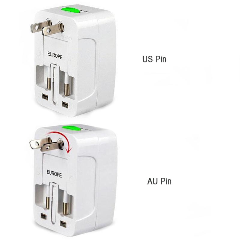All in One Worldwide Travel Adapter AU UK US EU Power Plug Universal Wall AC100-240v Surge Protected Adaptor Charger with USB Charging Port International Converter Socket White (Dual USB Port)