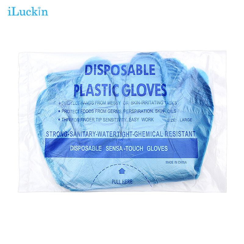 iLuckin Disposable Blue Transparent Gloves Disposable Plastic Gloves 100/200/300pcs Disposable Plastic convenient Disposable Gloves food kitchen industry production