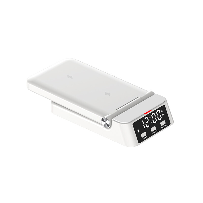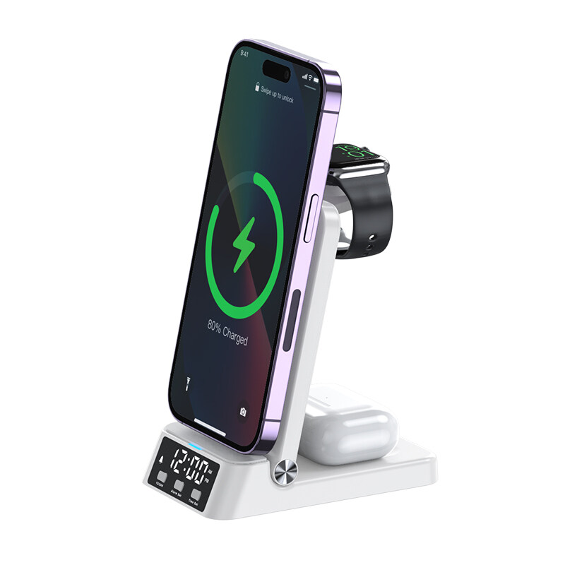 HOCE 3 in 1 Wireless Charger With Alarm Clock Night Light 15W Charging Foldable Dock Stand for iPhone 14 13 12 Apple Watch Series 8 7 6 5 4 Airpods 3 Pro 2
