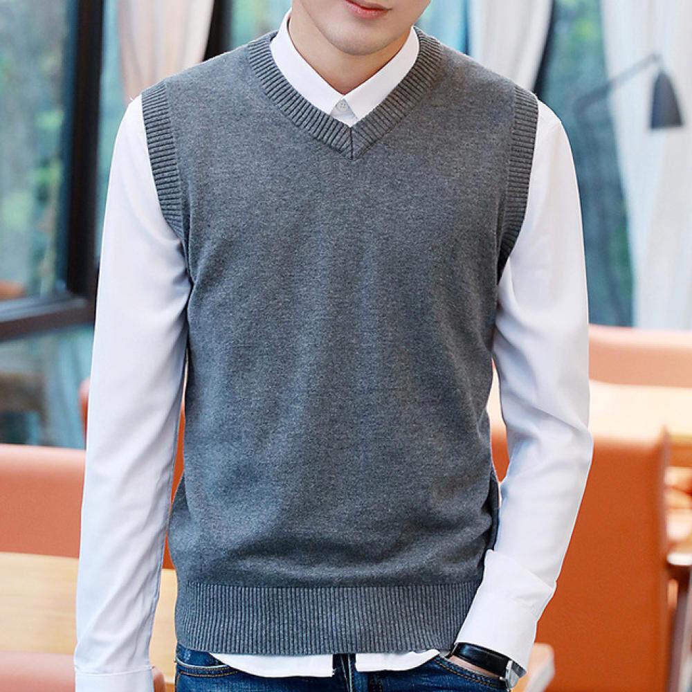 LUX ANGNER Sweater Men 100% Cotton Solid V Neck Vest Sweaters Men Fashion Knitted Sleeveless Pullover Sweater Casual Men Male Clothes