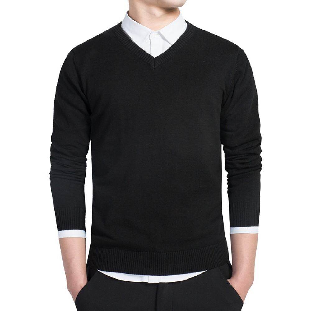 Item Type:Pullovers Gender:Men Technics:Computer Knitted Hooded:No Wool:Standard Wool Collar:V-Neck Sleeve Length(cm):Full Decoration:None Sleeve Style:Regular Pattern Type:Solid Style:Casual,Simple Style Material:Cotton Closure Type:None Thickness:Standard Season:Spring,Autumn,Winter 6 Colors:Black,White,Gray,Red,Light gray,Dark blue Size:M, L, XL, XXL, 3XL