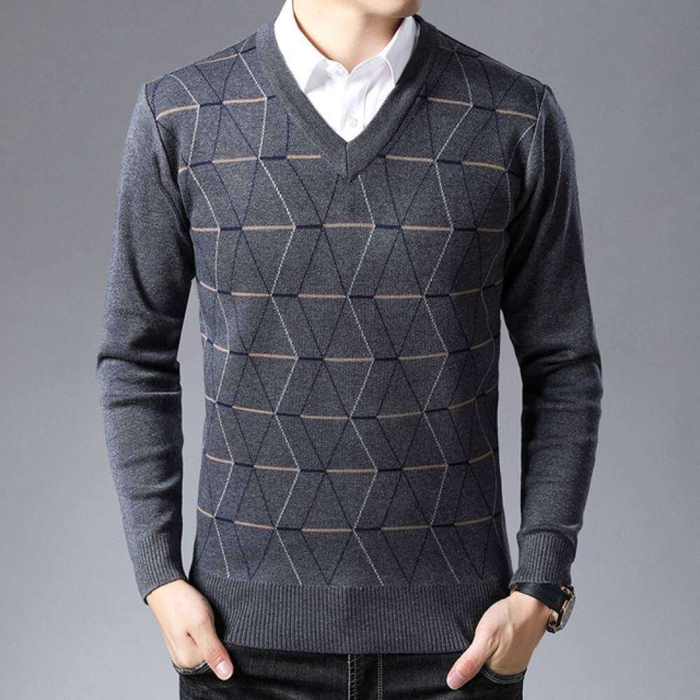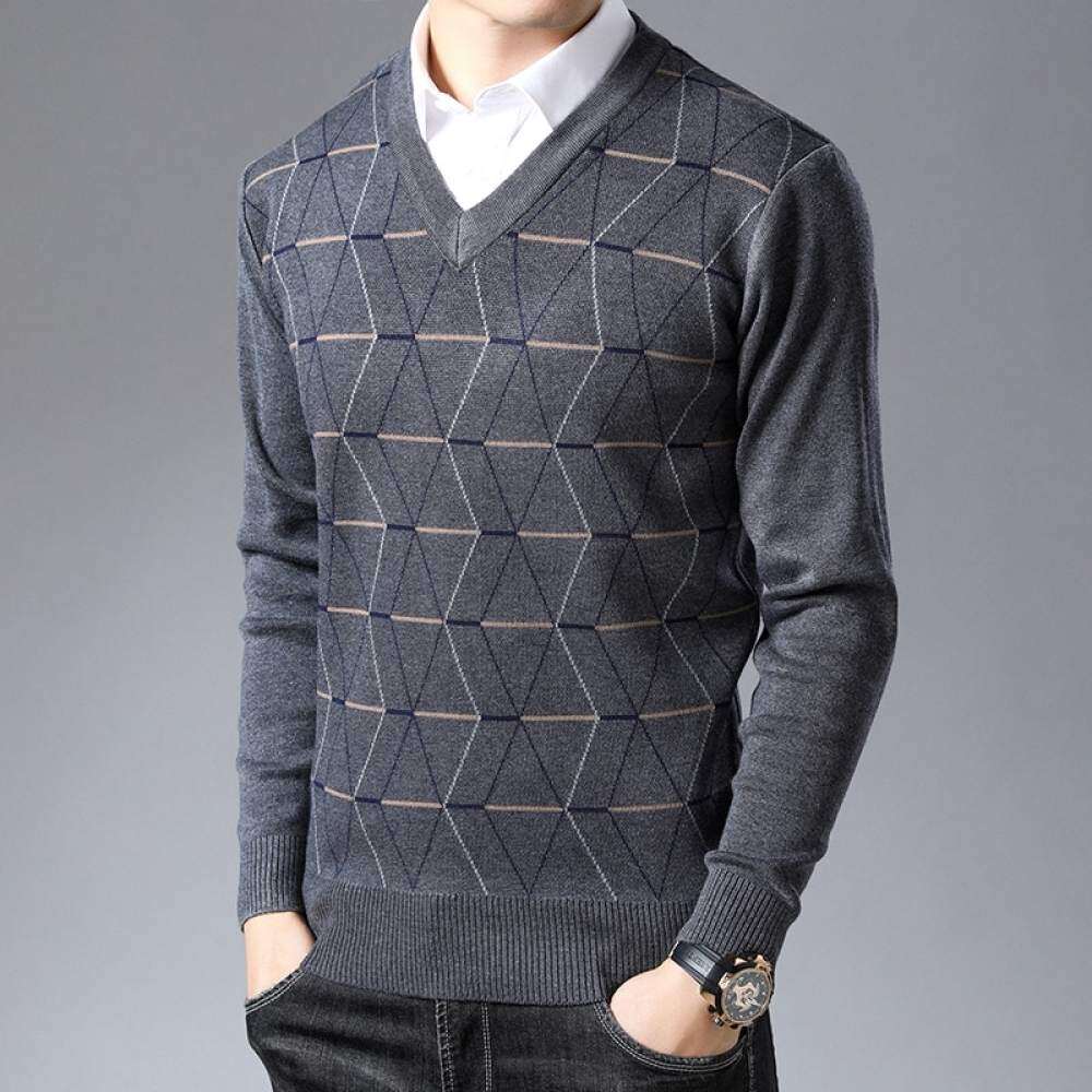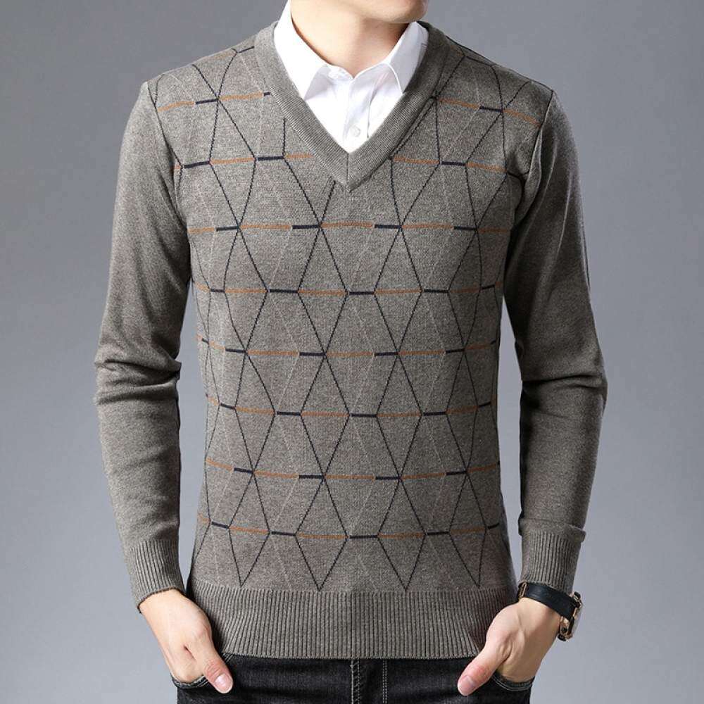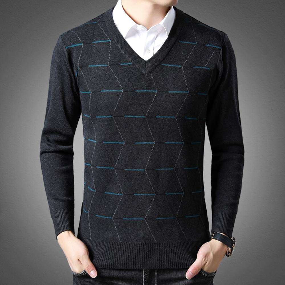 LUX ANGNER Fashion Brand Pullovers Sweater For Men V Neck Slim Fit Jumpers Knit Thick Warm Sweaters Man Autumn Winter Casual Korean Style Pullovers