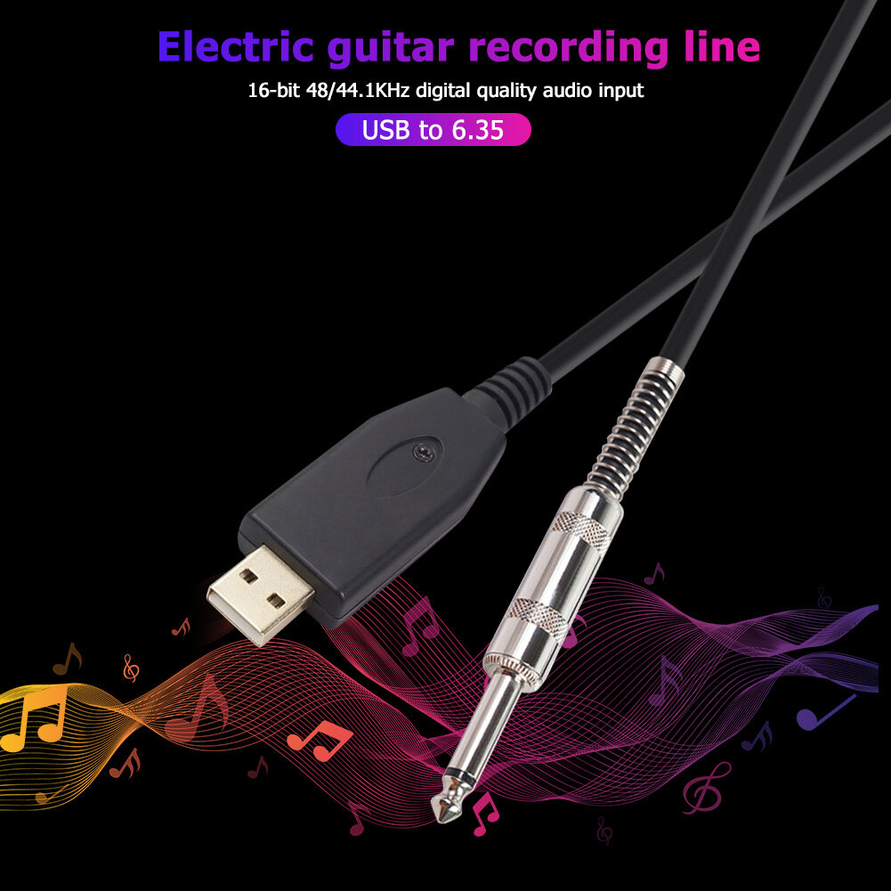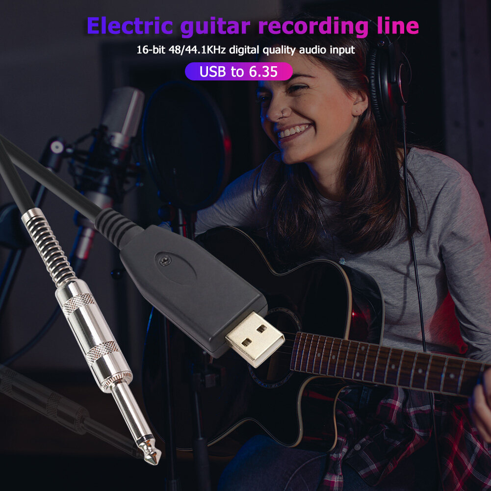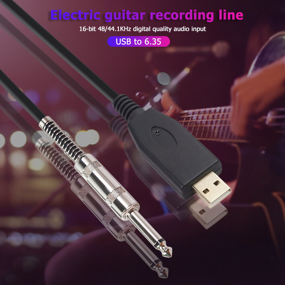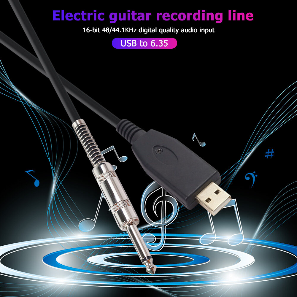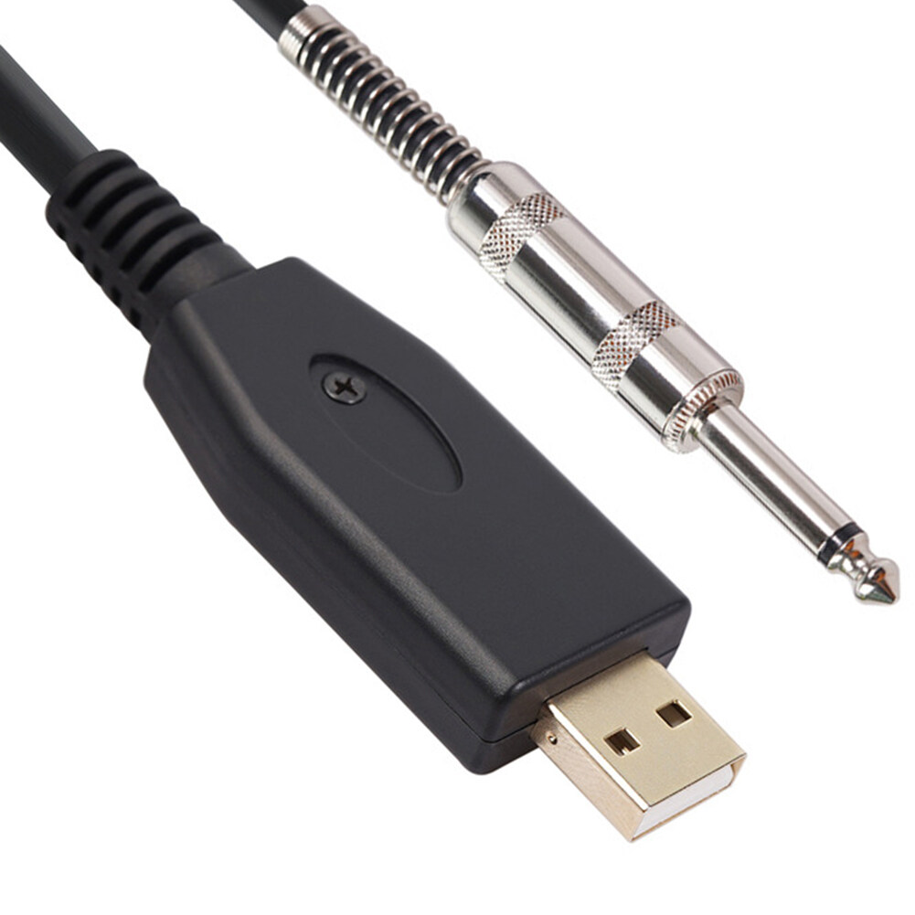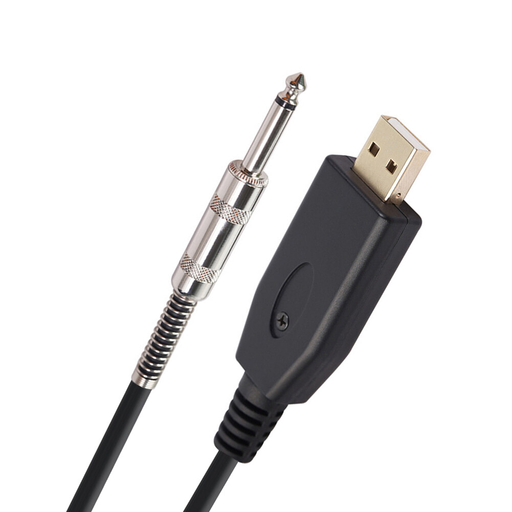 USB Guitar Cable Guitar Bass to USB Link Connection Cable USB Male to 6.35mm 1/4 inch TS Mono Connector Adapter Cord