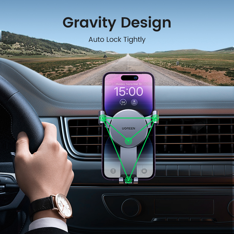 UGREEN Car Vent Phone Mount Gravity Phone Holder Hands-Free Car Air Vent Mount Auto Lock for iPhone 14 13 12 11 Pro Max Galaxy S22 S9 S10 Realme Oppo Vivo Phone Holder