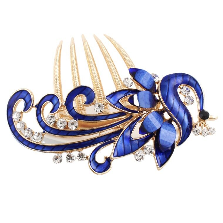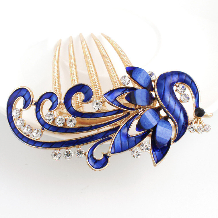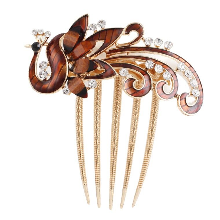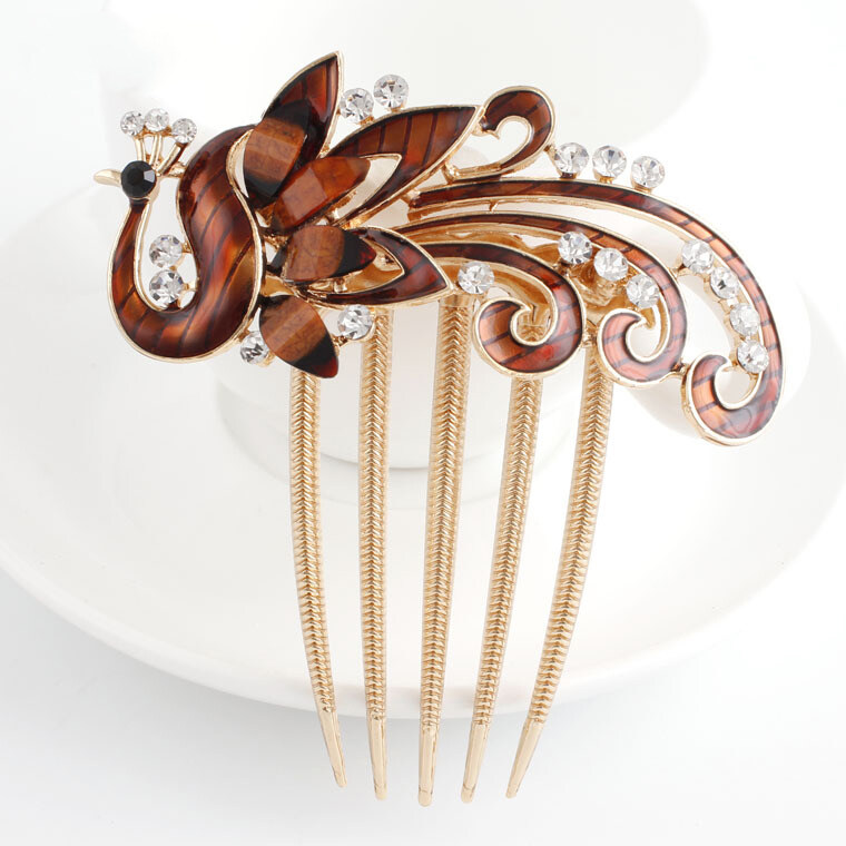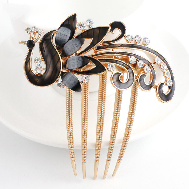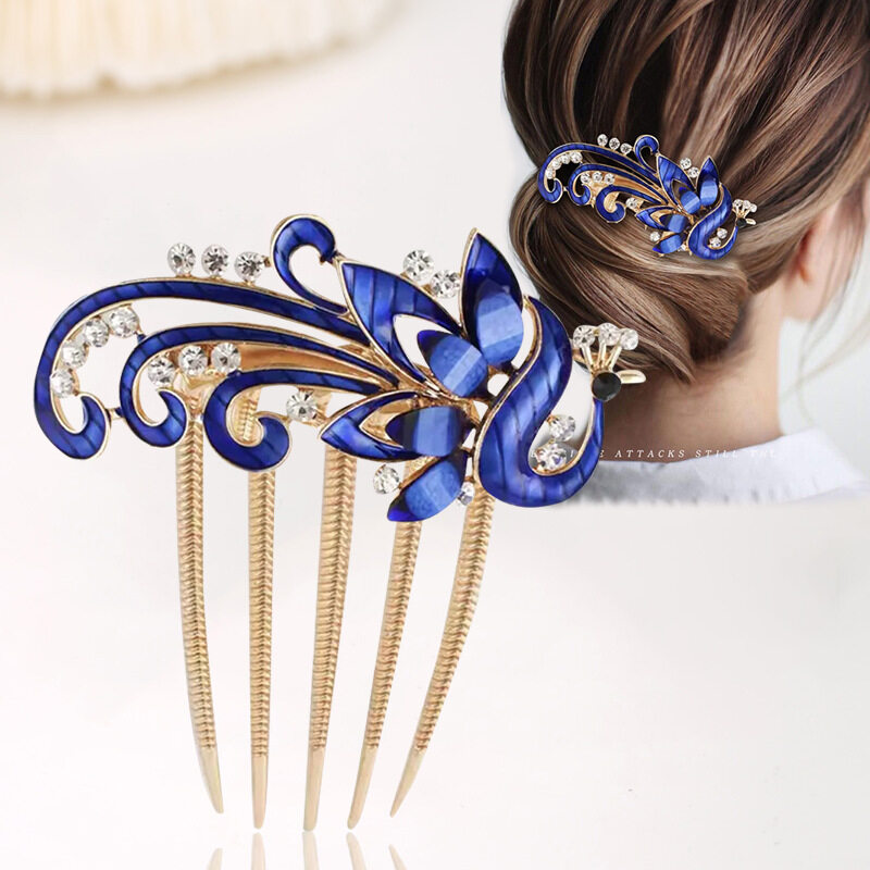1pc Korean Rhine-drill Metal Hair Comb Decorated Peacock Retro Hair Clip Elegant Temperament Women Hair Accessories