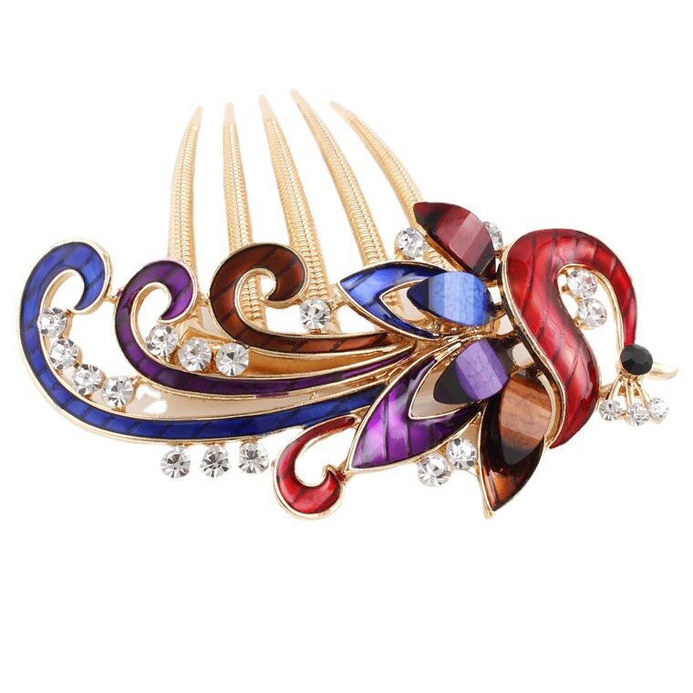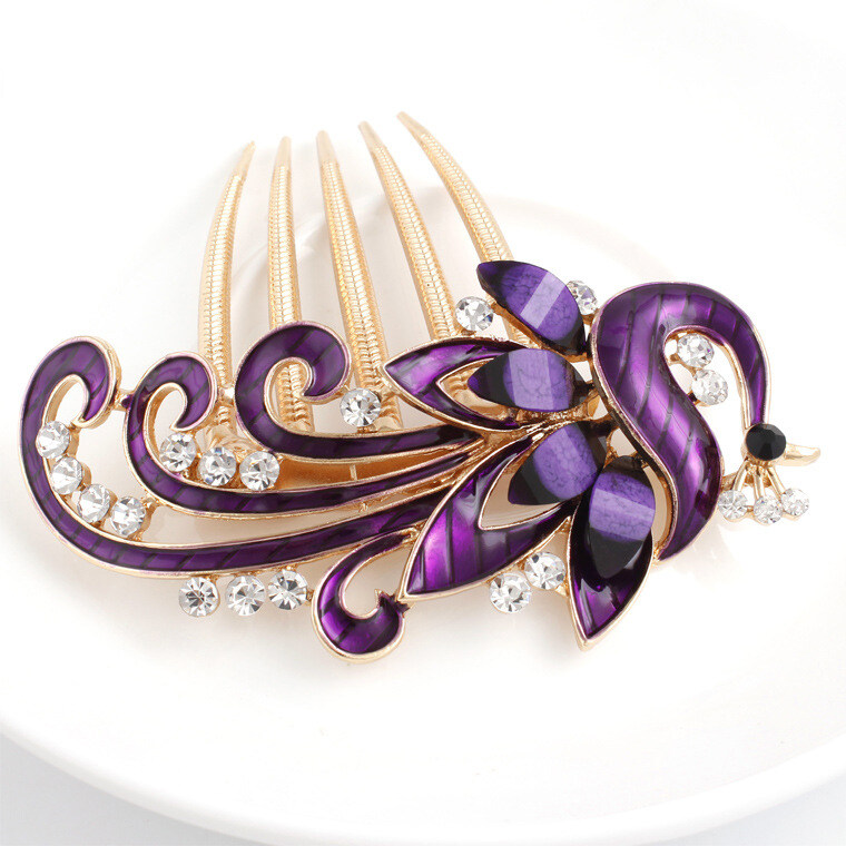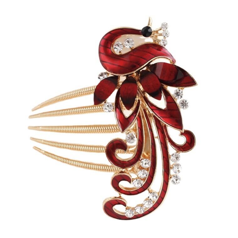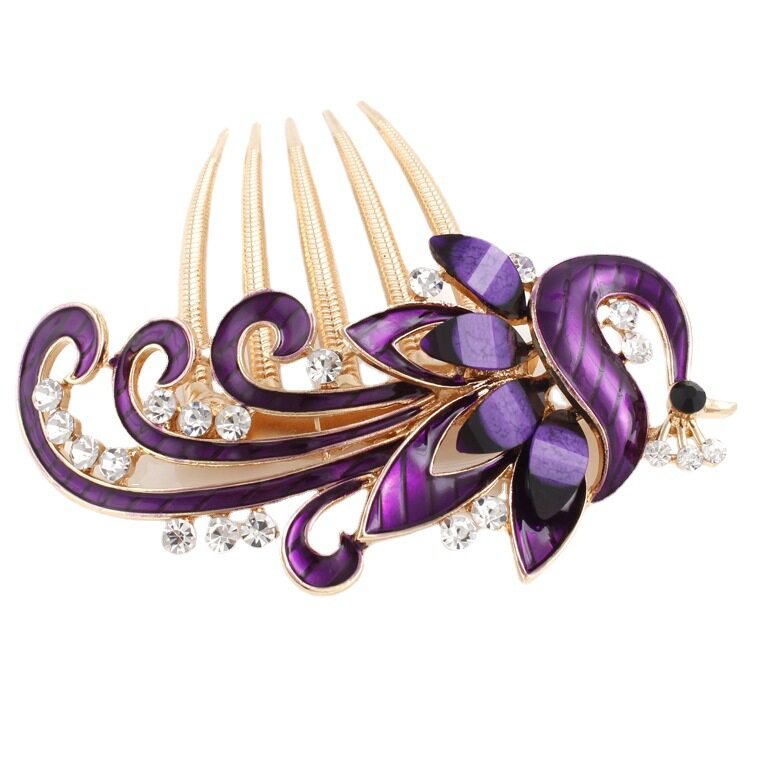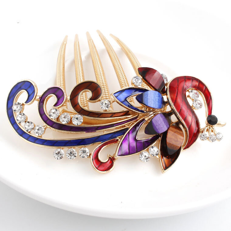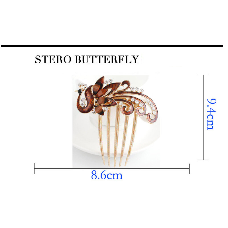 1pc Korean Rhine-drill Metal Hair Comb Decorated Peacock Retro Hair Clip Elegant Temperament Women Hair Accessories