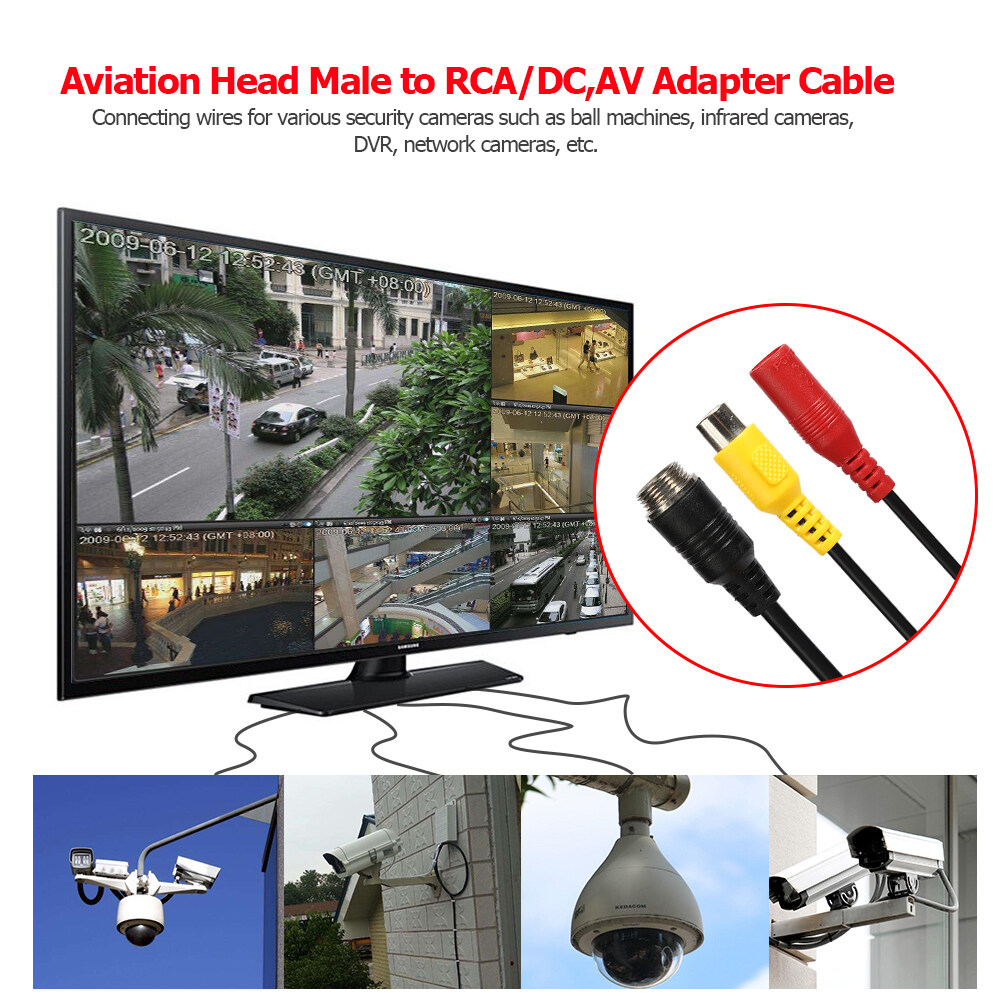 M12 4Pin Aviation Head Male to RCA/DC Female CCTV Camera AV Adapter Connector Cable Wire
