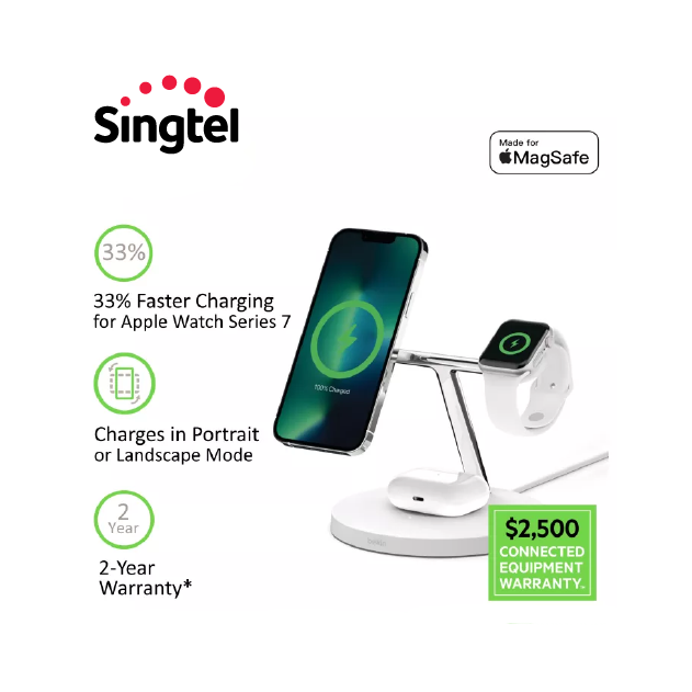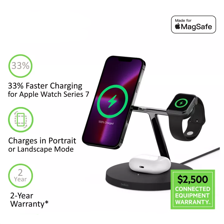 Belkin WIZ017my BoostCharge PRO 3-in-1 Wireless Charger with MagSafe 15W and Power Adapter (iPhone 14/13/12)