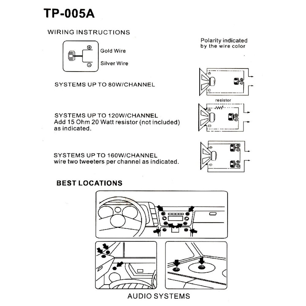 Description: 500 Watts Built-in crossover 97dB of pure sound For all car audio systems Fits anywhere Instant installation More sound, less energy High-efficiency dome tweeter No magnetic field, tapes, or credit cards are safe