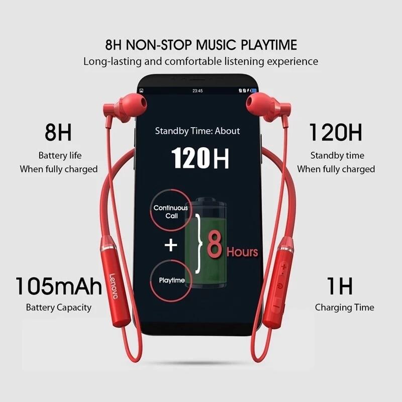 100% original Lenovo HE05 earphones Bluetooth 5.0 Wireless Earbuds Magnetic Neckband Sports Earphones IPX5 Waterproof Sport Headset with Noise Cancelling Mic HE05