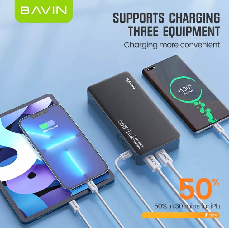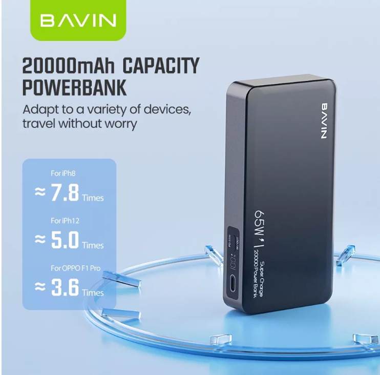 BAVIN Laptop 20000mAh Powerbank Fast Charging 65W High Speed QC + PD QUICK CHARGE POWER DELIVERY