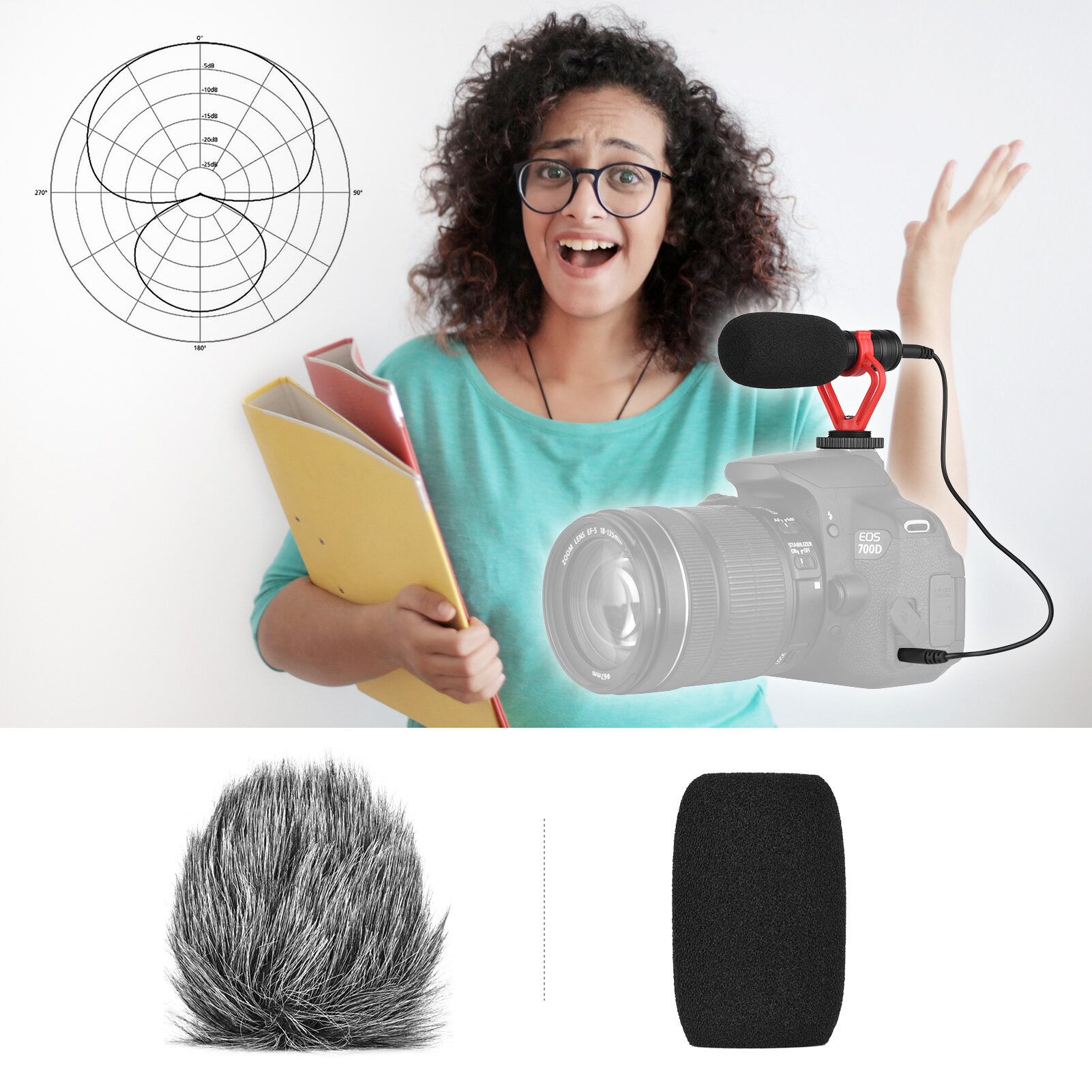 Andoer Camera Microphone Cardioid Condenser Mic with 3.5mm Port Anti-Shock Mount Sponge & Furry Windshield Carrying Case Compatible with Phones Camera for Video Recording Interview